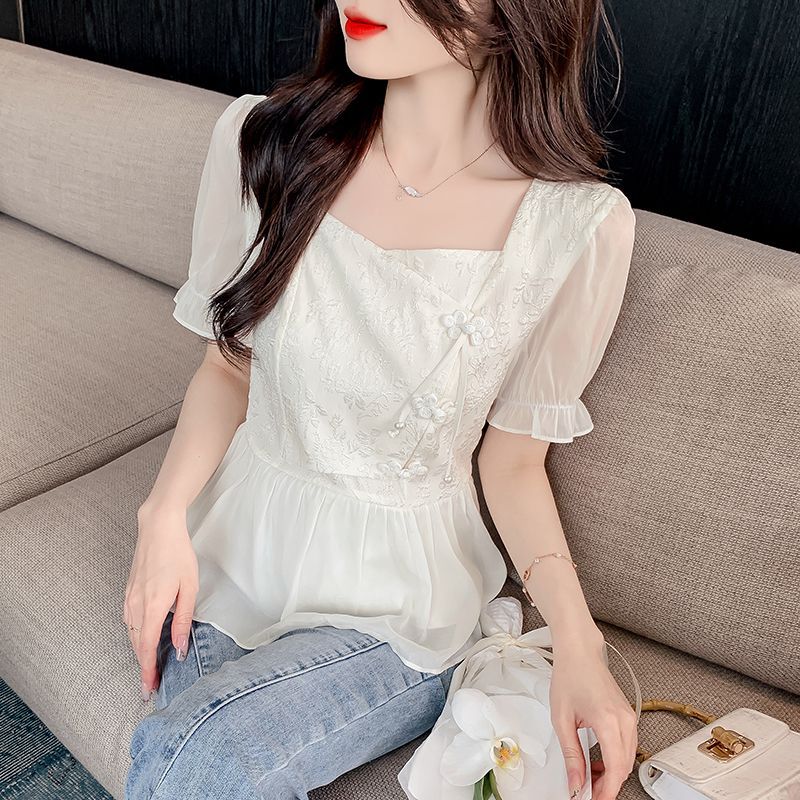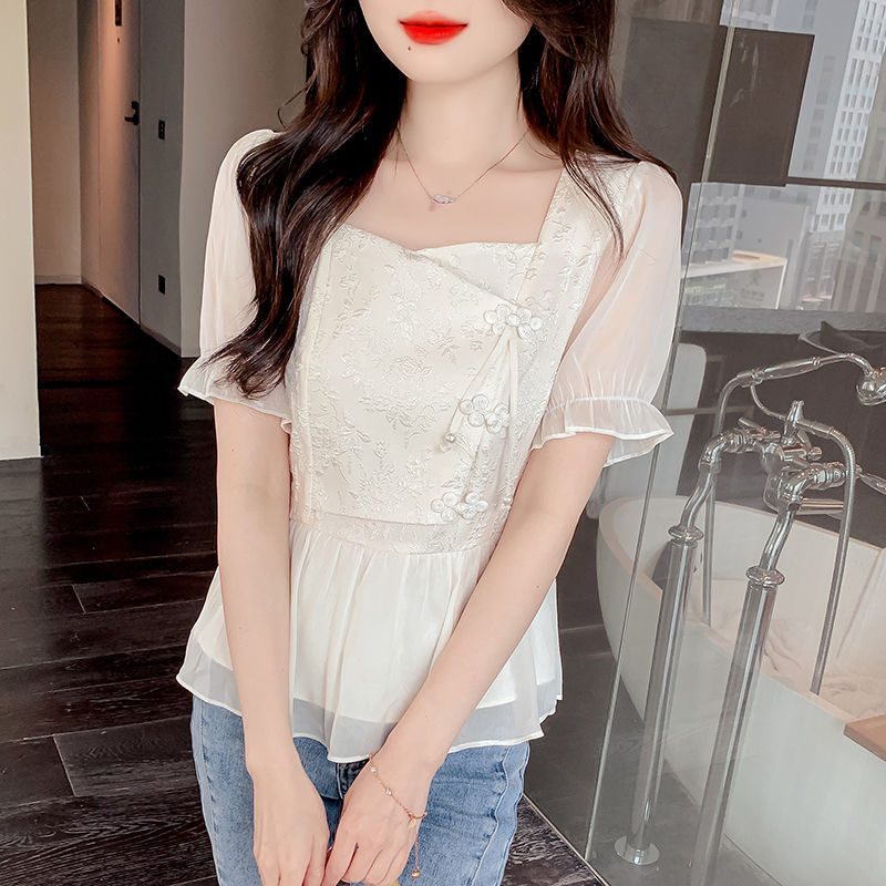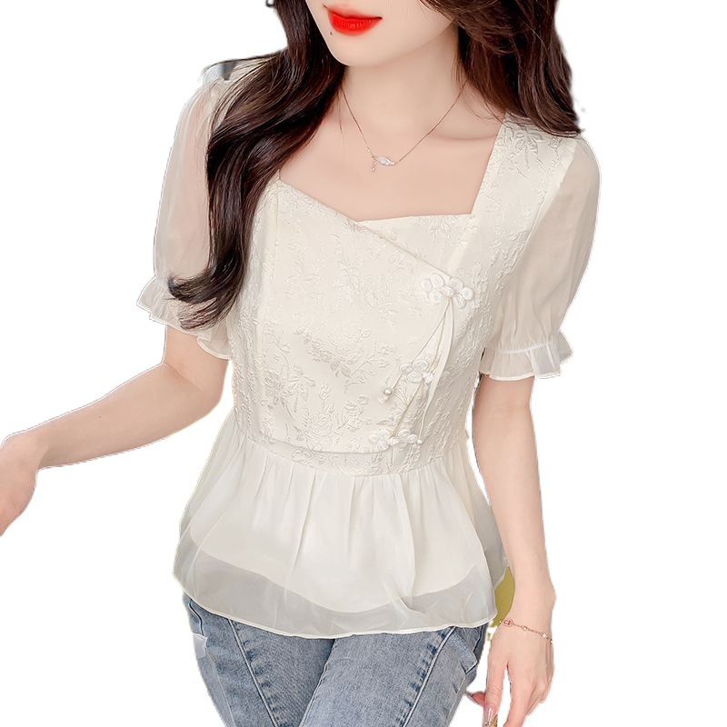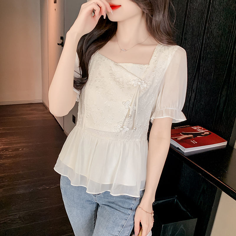 | nameOriginal | Short Sleeve Shirt Women's 2024 New Summer New Chinese Style National Style Small Shirt Unique Chic French Waist Elegant Top |