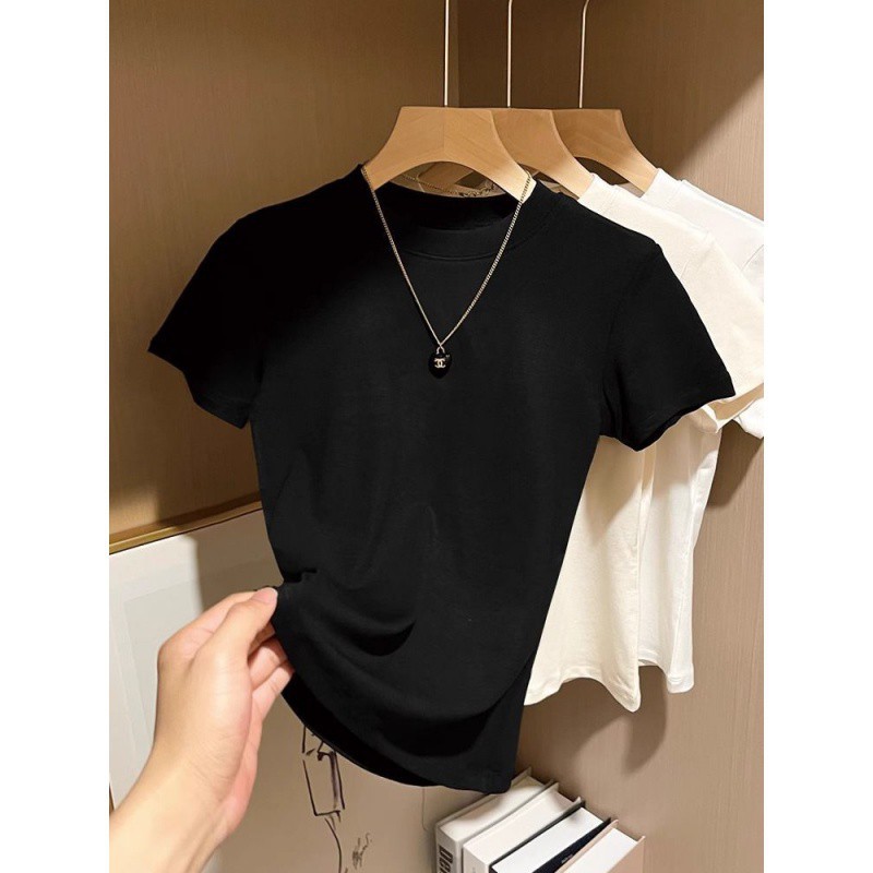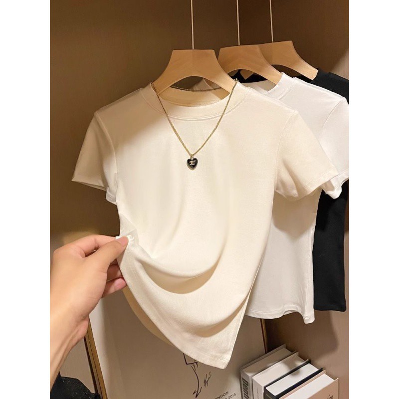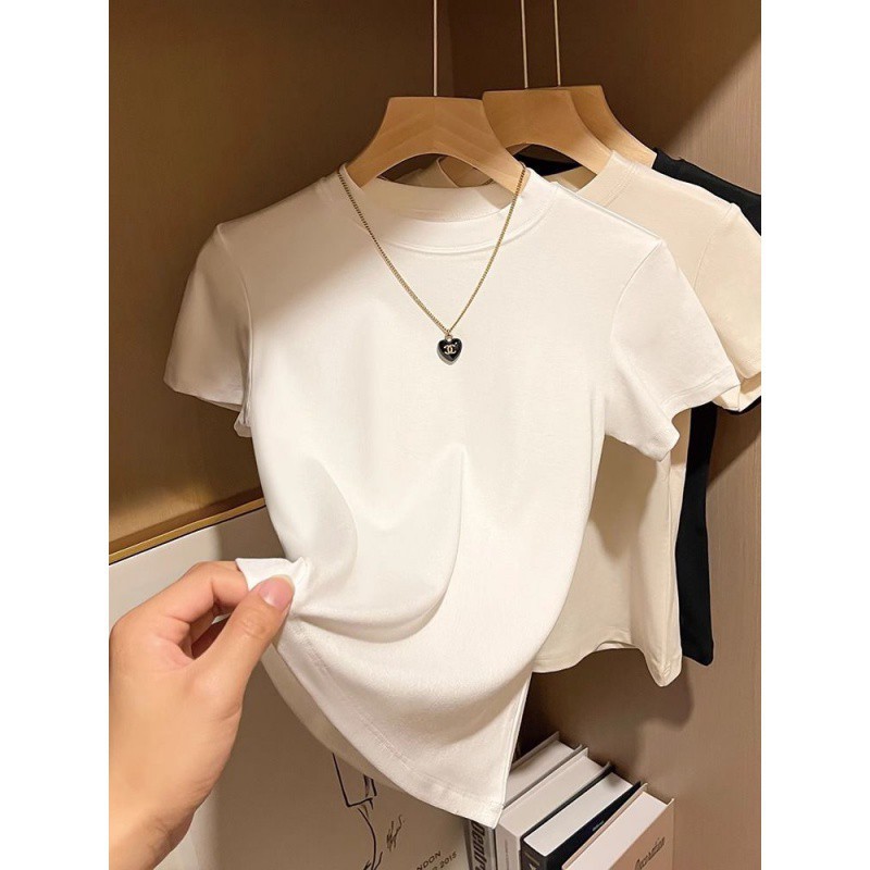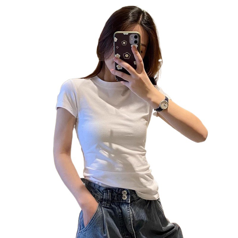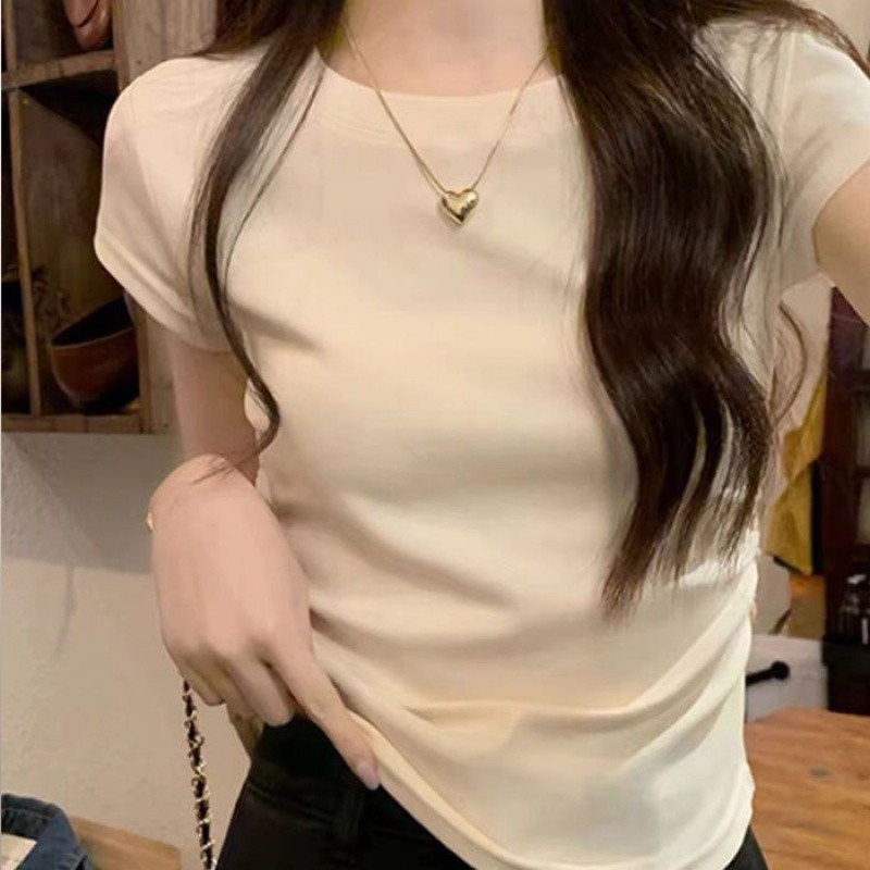 | nameOriginal | Short-Sleeve Shirt Women's Shoulder White Slim-Fit Summer 2024 Solid Color Threaded Round Neck Top All-Match Base Shirt T-Shirt |