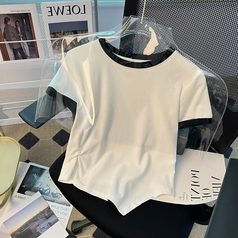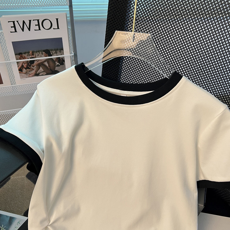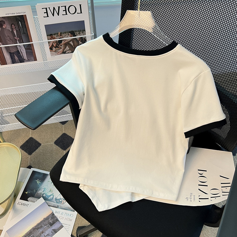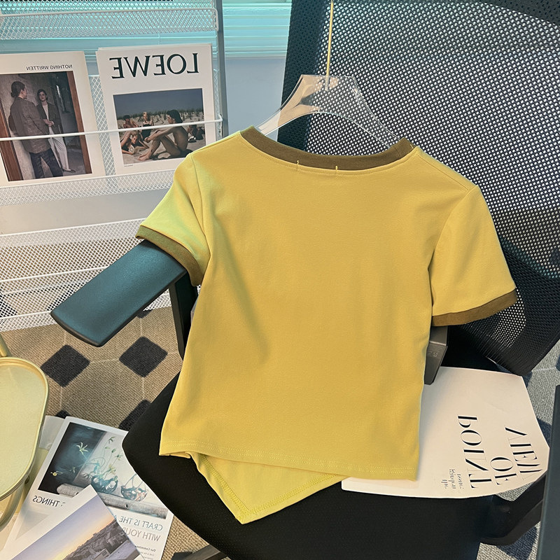 | nameOriginal | Short Sleeve women's design contrast color T-shirt 2023 new summer fashion chic irregular short student top |