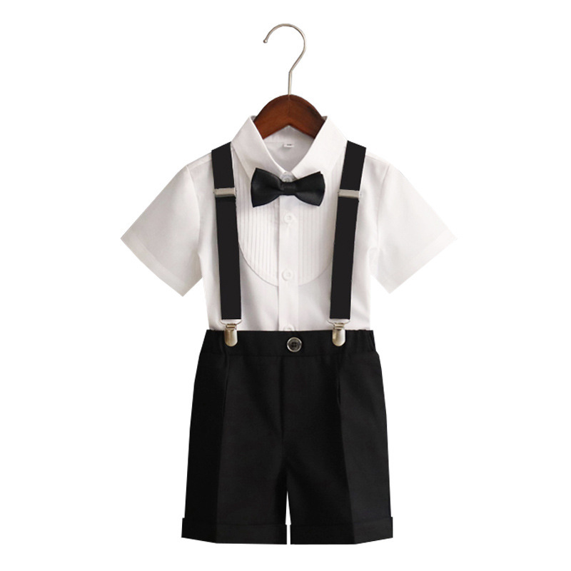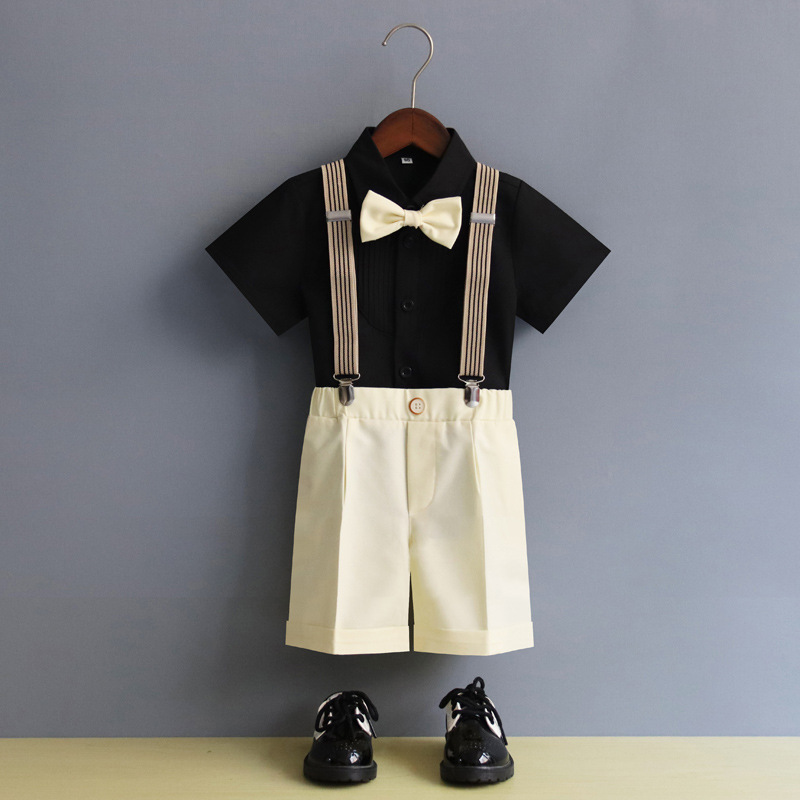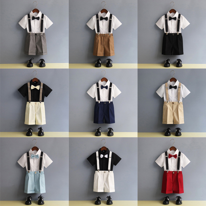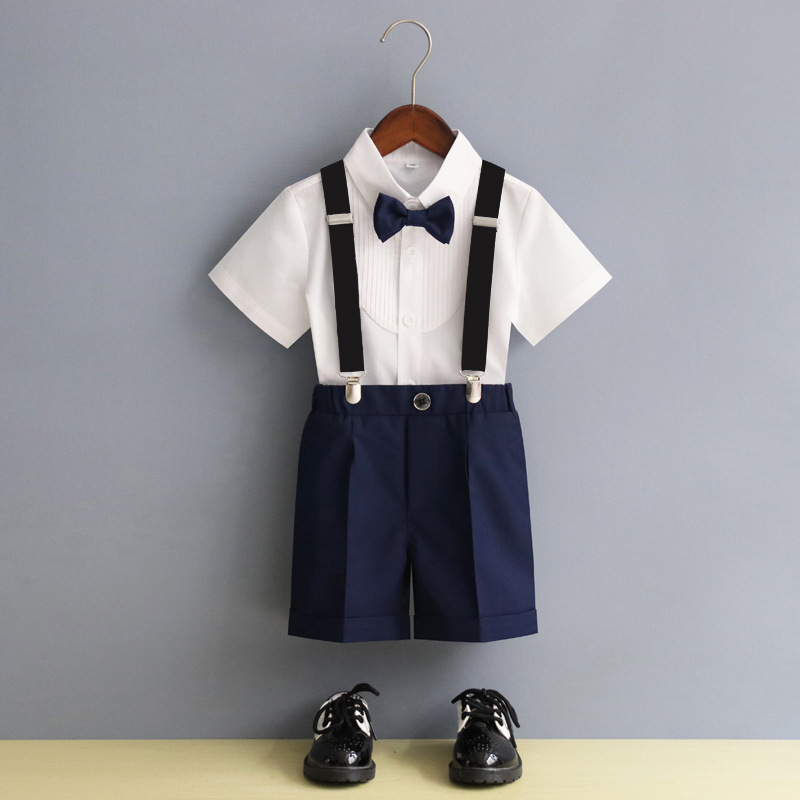 | nameOriginal | Short-sleeved Boys' Dress suit Summer Children's Strap Pants British Style Kindergarten Graduation Performance Small Suit |