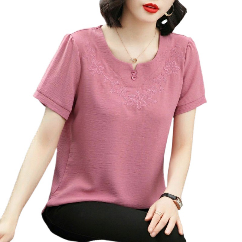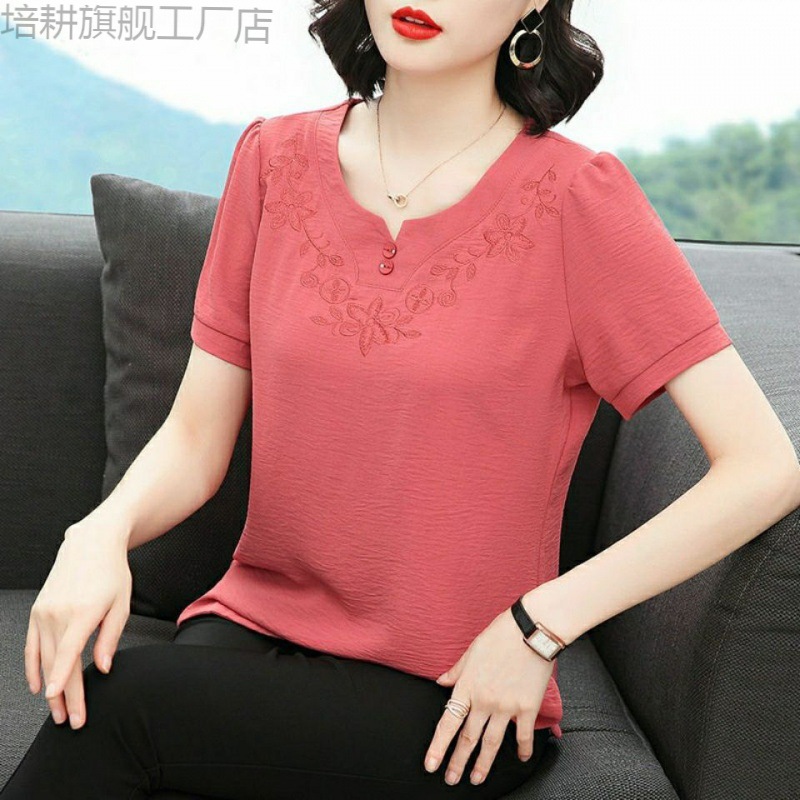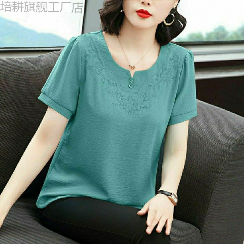 | nameOriginal | Short-sleeved Chiffon Shirt New Summer Loose Belly Covering Age-reducing plus size Stylishly Middle-aged Mother Base Shirt |