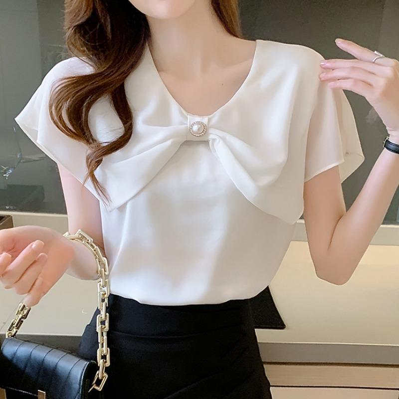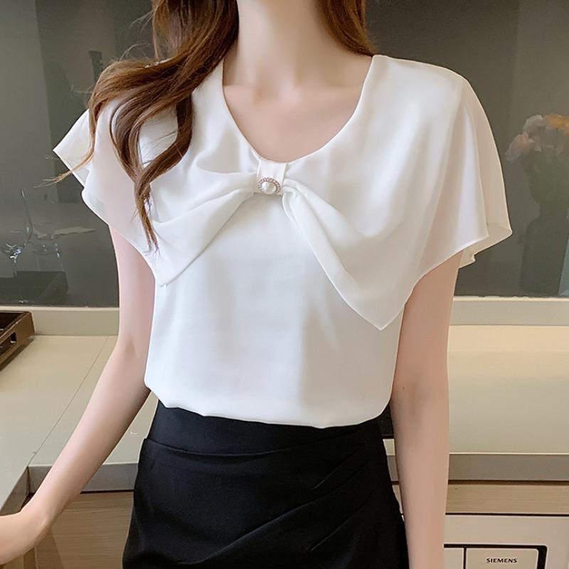 | nameOriginal | Short-sleeved chiffon shirt women's summer 2024 new design sense bow slim foreign style small shirt thin top tide |