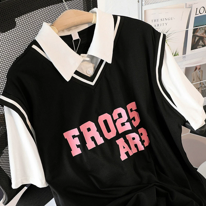 | nameOriginal | Short-sleeved college style polo shirt with fake two-piece design |