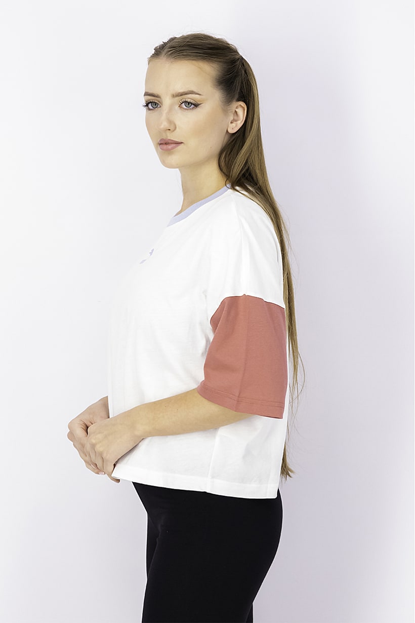 | descriptionOriginal | Care : Machine washable, Fit : Sportswear Fit, Size shown : US, Thickness : Light, Type of Sport : Training, Types of Hem : Straight hem, Types of Sleeve : Short sleeve, Disclaimer : Product color may slightly vary due to photographic lighting sources or your monitor settings., Fabrics : 100% Cotton, Pattern & Print : Colorblock, Brand Logo, Sportswear Type : Tops, Color Family : White, |