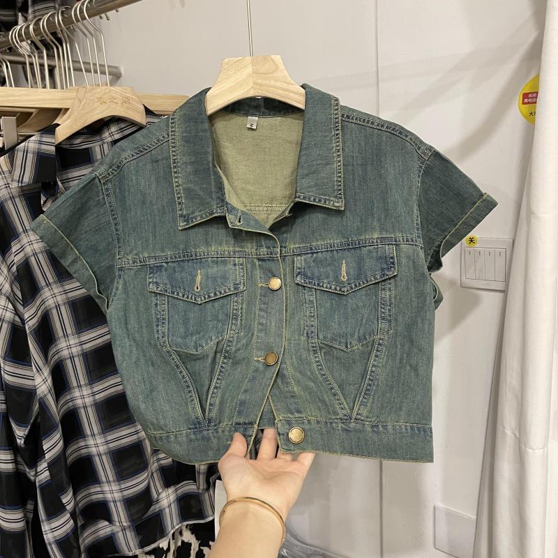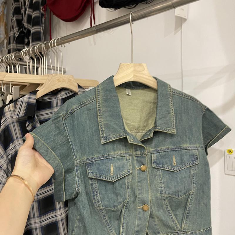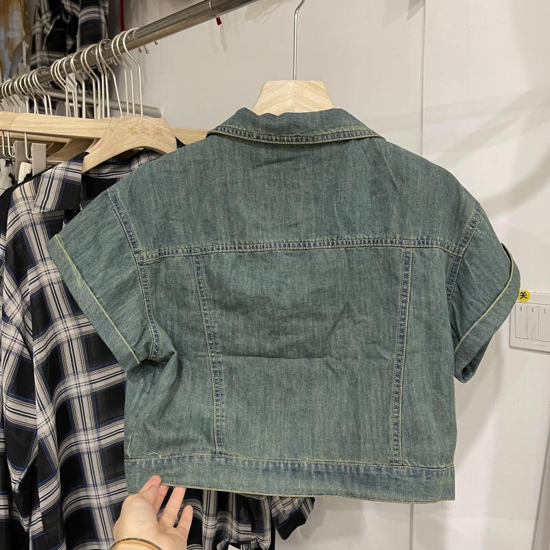 Short-sleeved Denim Coat Shirt Women’s 2024 Summer Design Sense Niche Retro Shirt Hong Kong Style Lapel Short Top
