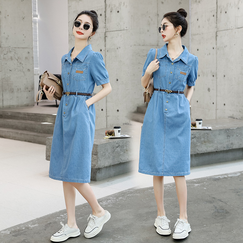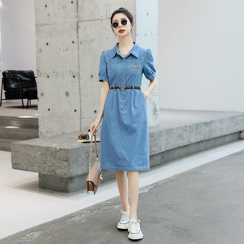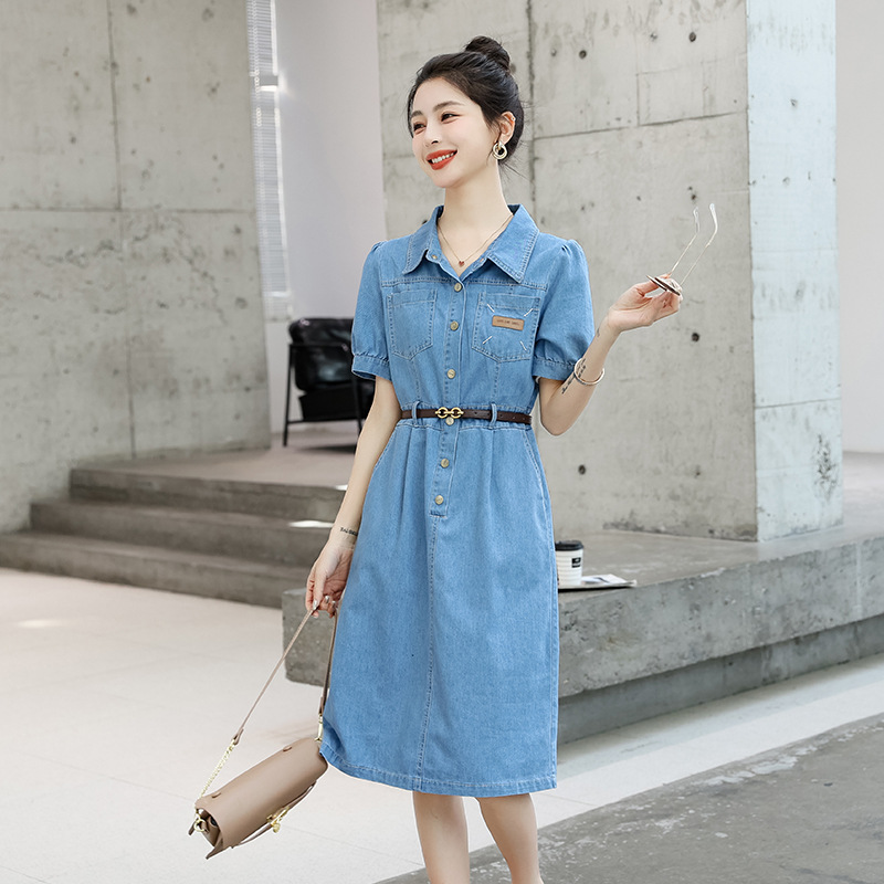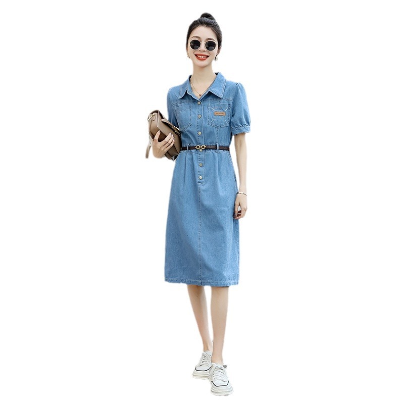 | nameOriginal | Short-sleeved Denim Dress Women's 2024 Summer New Arrival Small Stylist Mid-length Elegant A- line Dress |