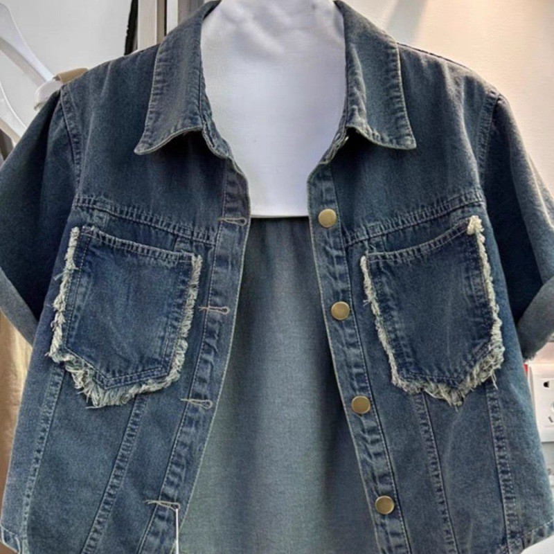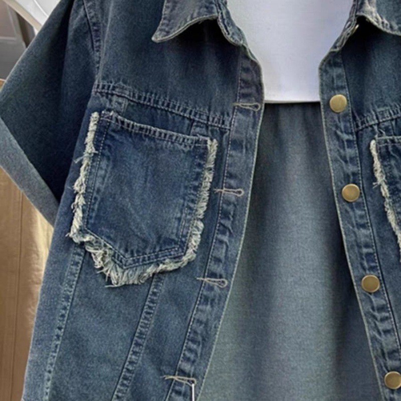 Short-sleeved Denim Shirt Jacket Women’s Summer New Loose Thin Design Niche Short Top