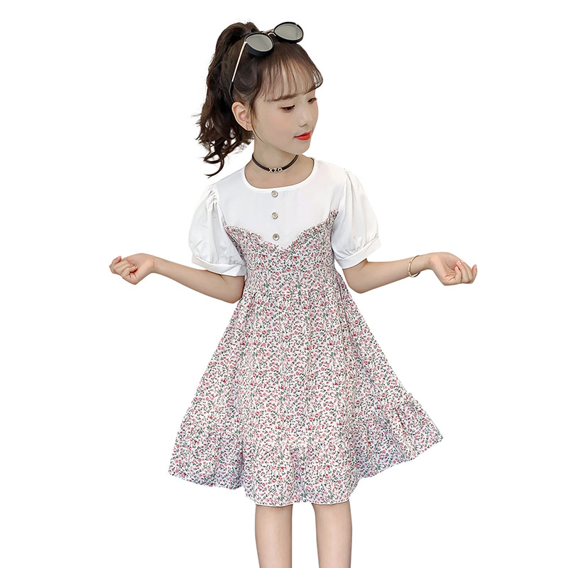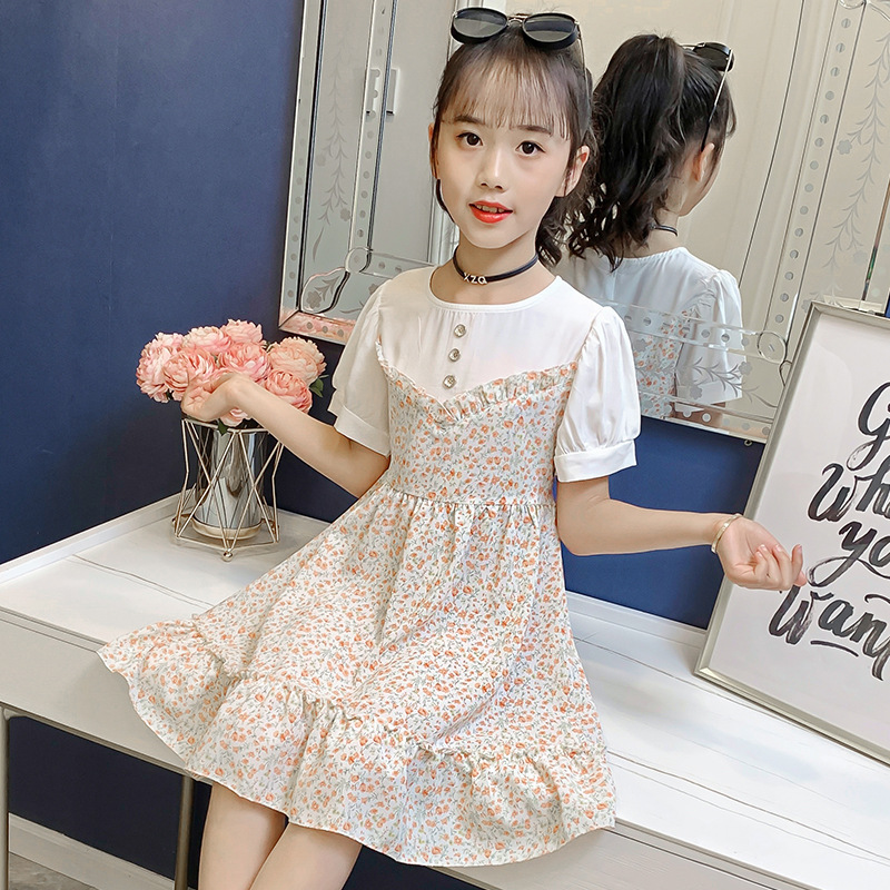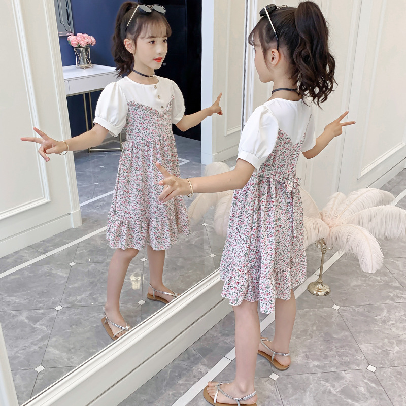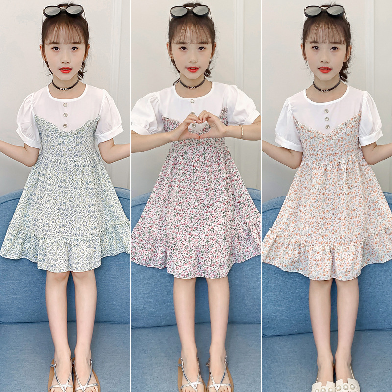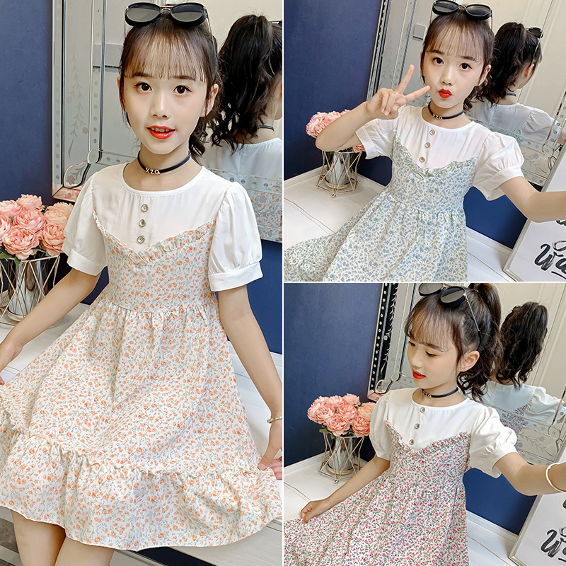 | nameOriginal | Short-sleeved dress floral dress two-piece wind fake 2024 dress girls new pastoral big children's summer clothes |