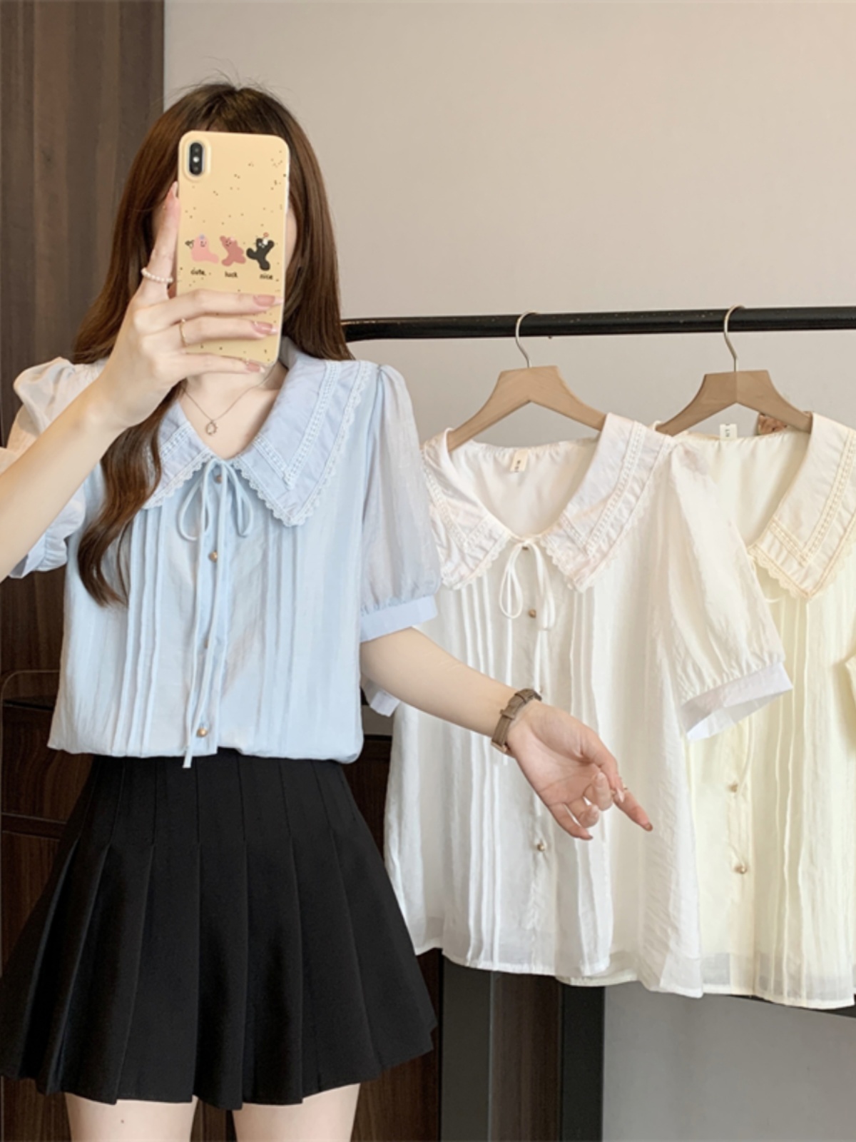 | nameOriginal | Short-sleeved fat girl doll collar chic and beautiful white shirt |