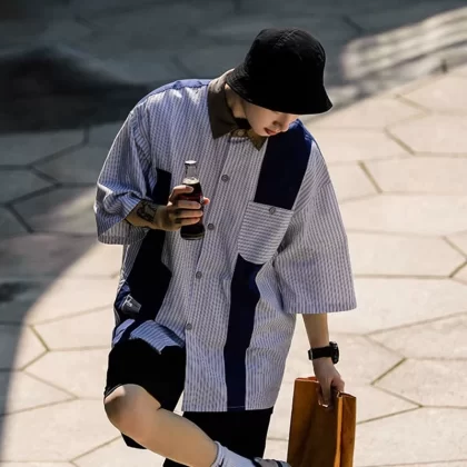 | nameOriginal | Short-sleeved Japanese contrasting design niche striped shirt |