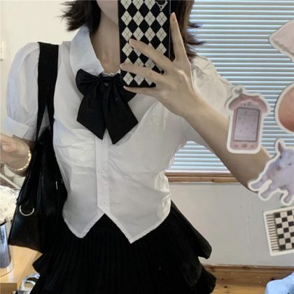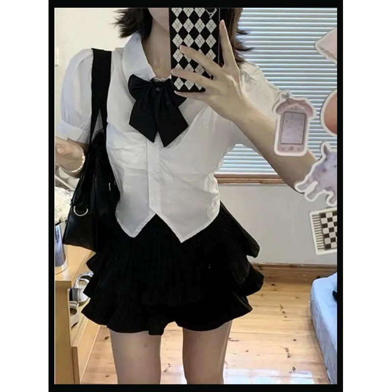 | nameOriginal | Short-sleeved JK Shirt Women's Small Design Sense New Style Tutu Skirt suit Academy-style Slim-fit Slim-fit Short Top |