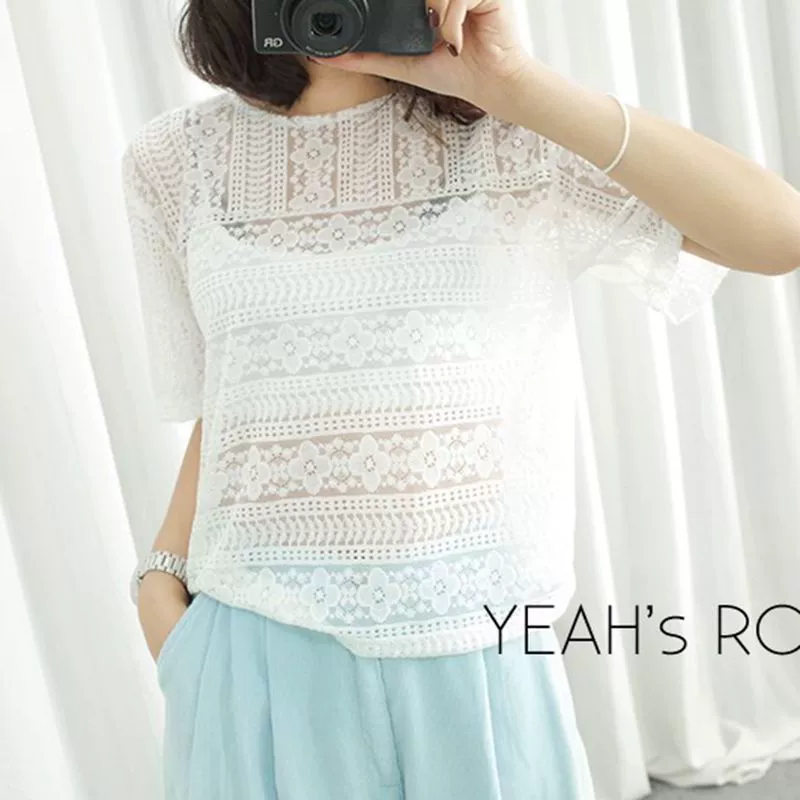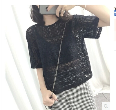 | nameOriginal | Short-sleeved loose tummy-covering sexy hollow lace blouse |
