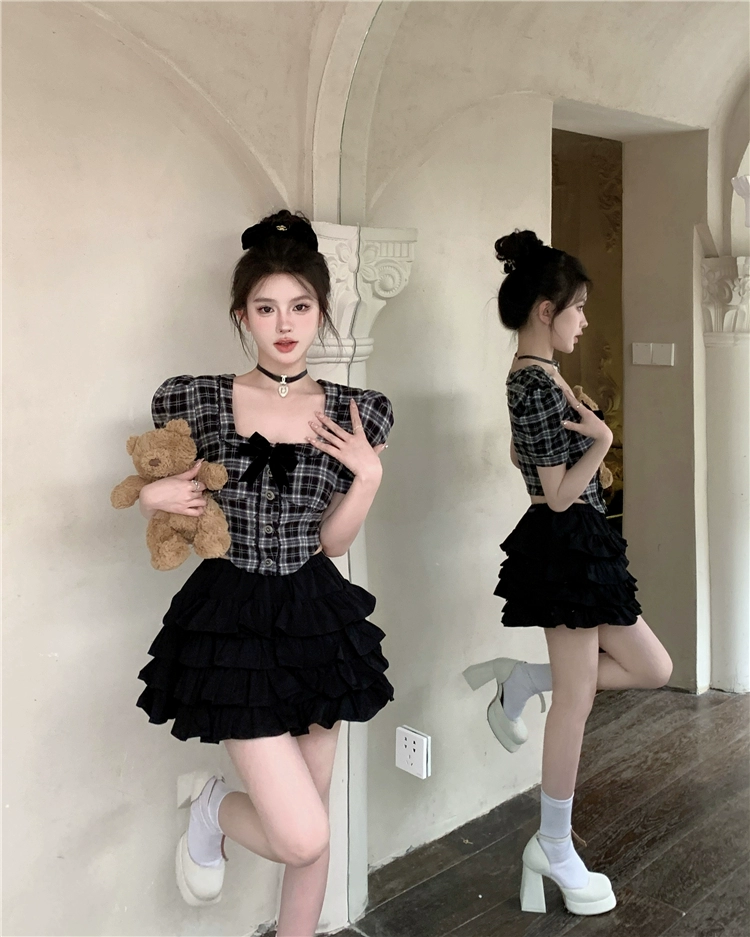 | nameOriginal | Short-sleeved plaid shirt casual curved slim fit bow |