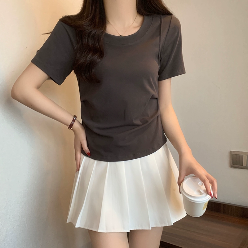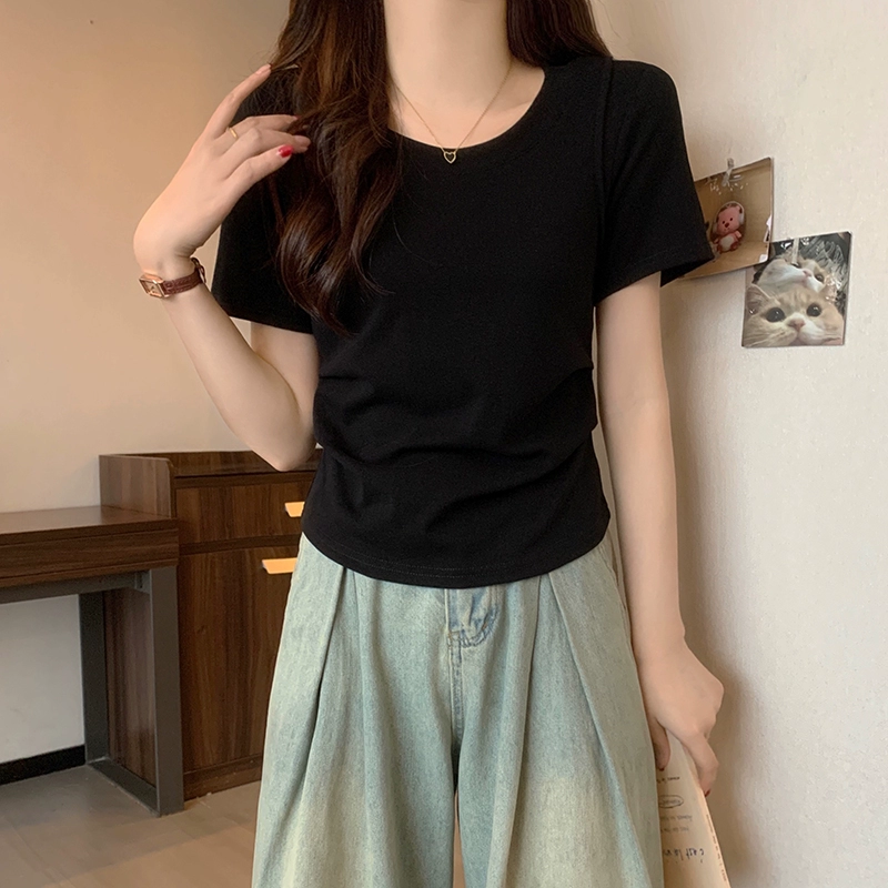 | nameOriginal | Short-sleeved plus size women's slimming top for fat women. Summer new style covering belly, waist and pleated casual all-match right shoulder T-shirt. |
