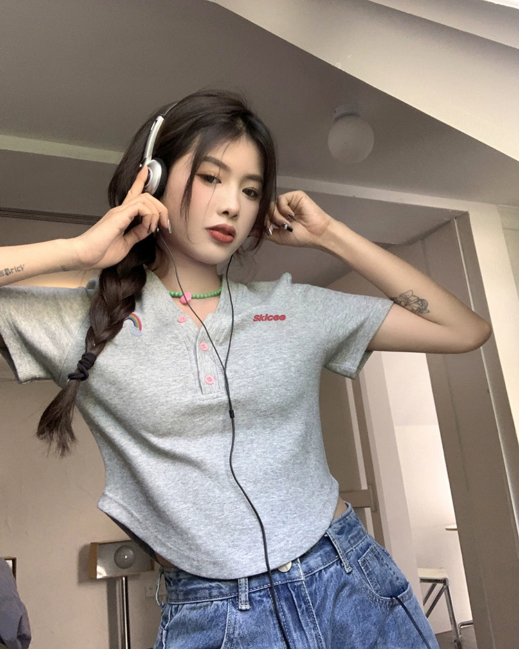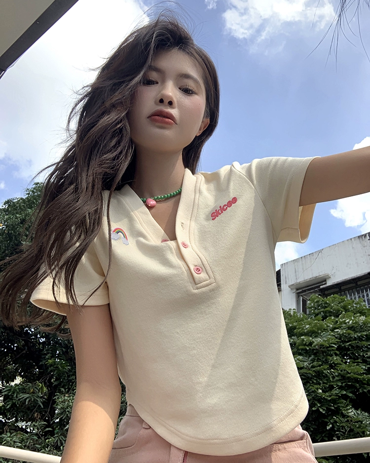 Short-sleeved shoulder-facing summer design loose top embroidery