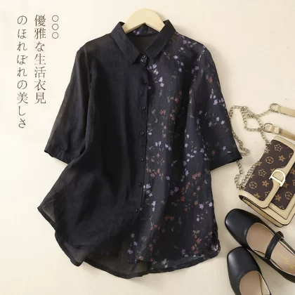 Short-sleeved shirt, artistic linen top, store removal