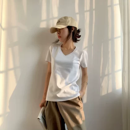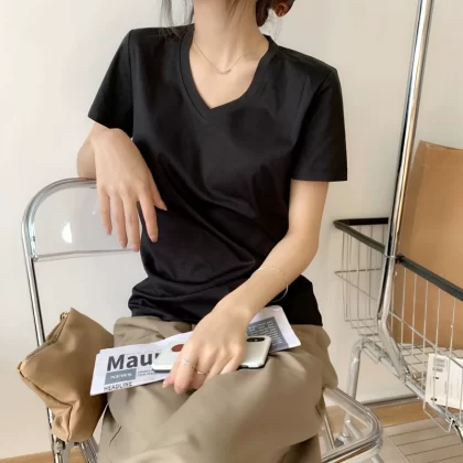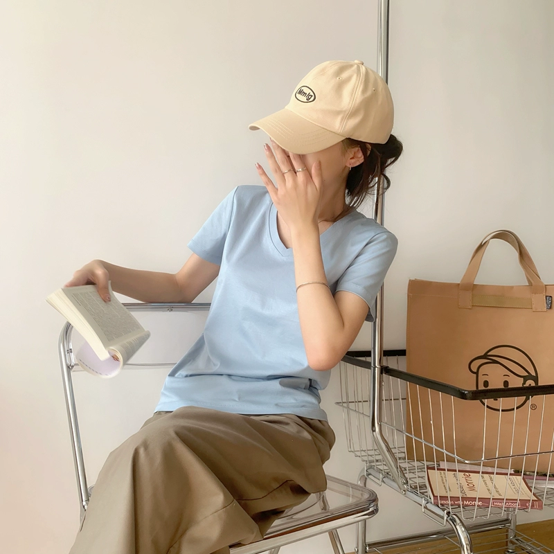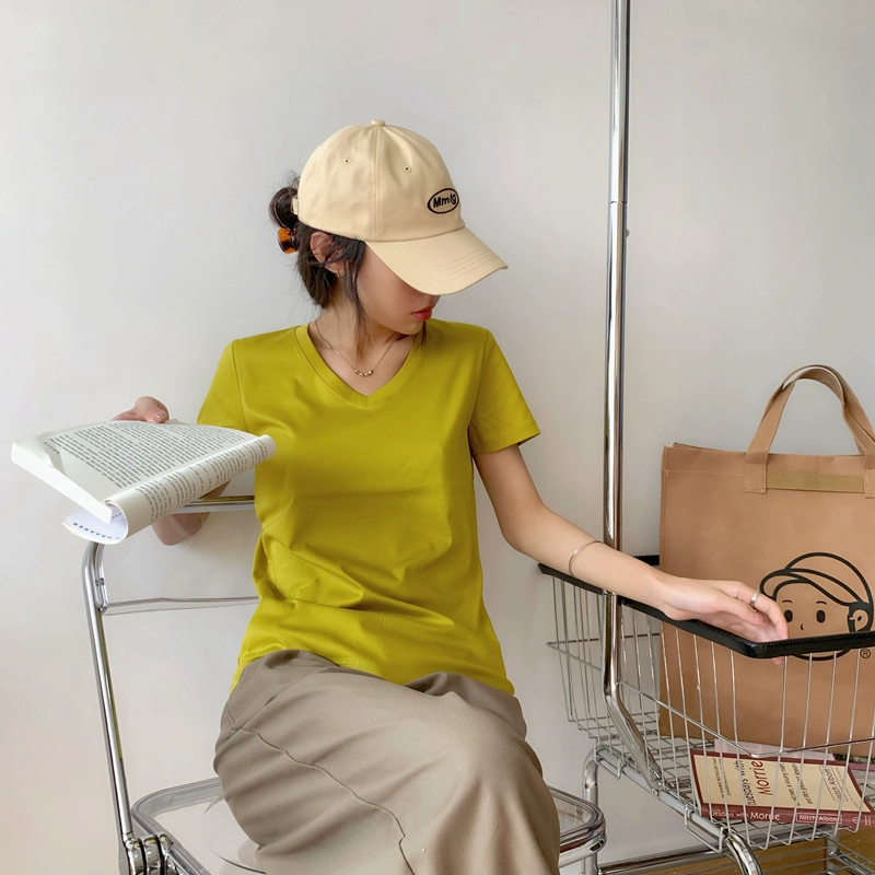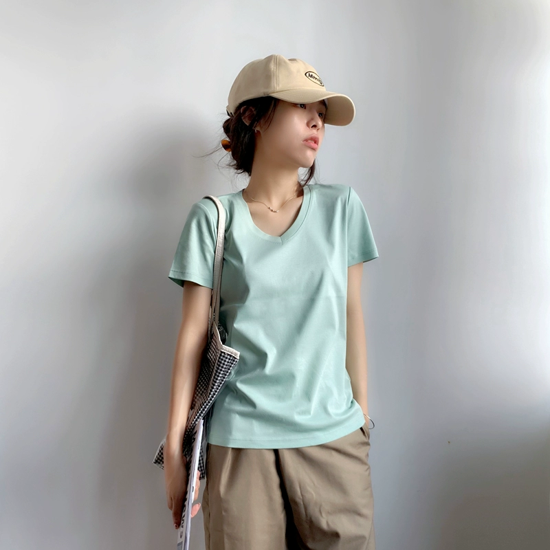 | nameOriginal | Short-sleeved solid color combed cotton loose top V-neck t-shirt |
