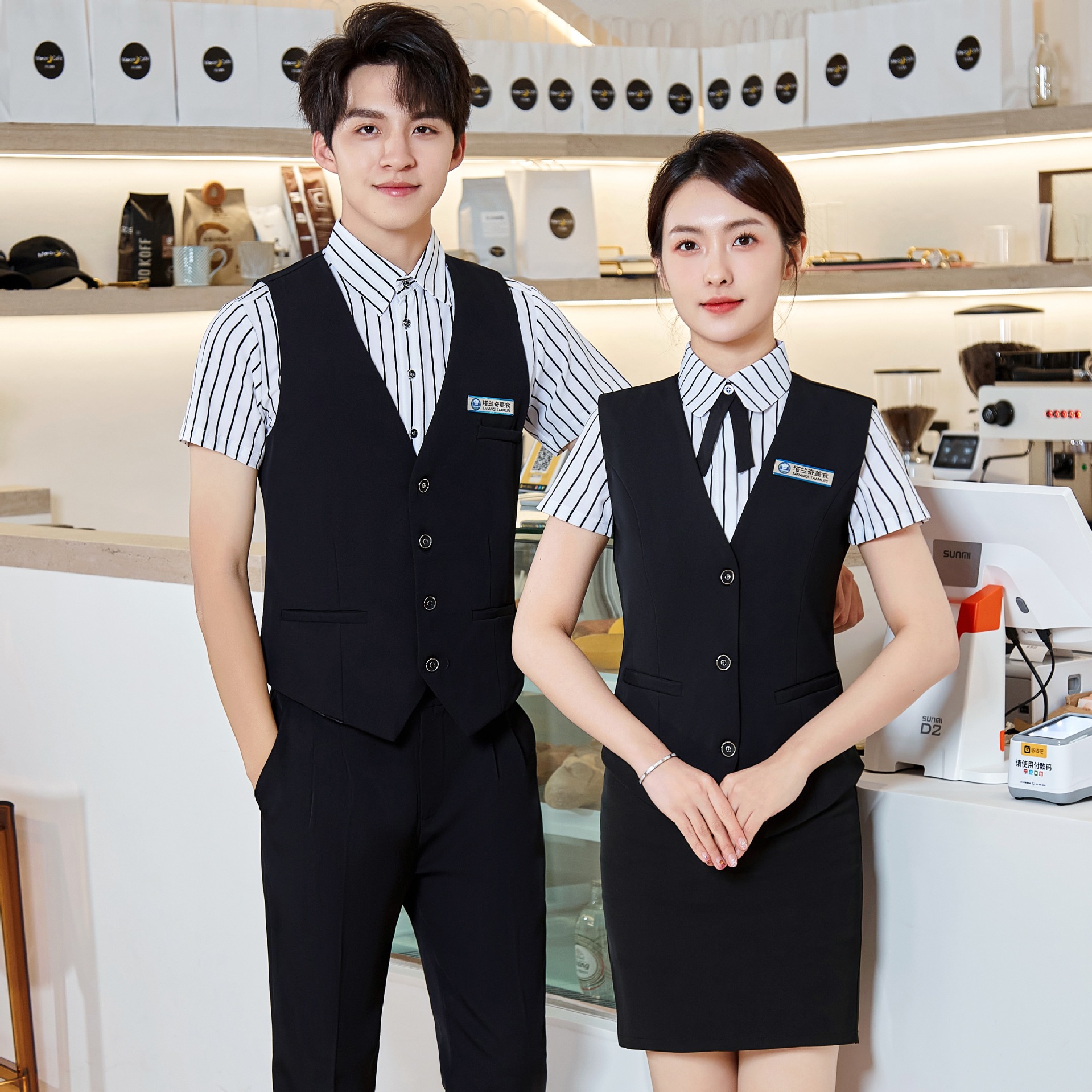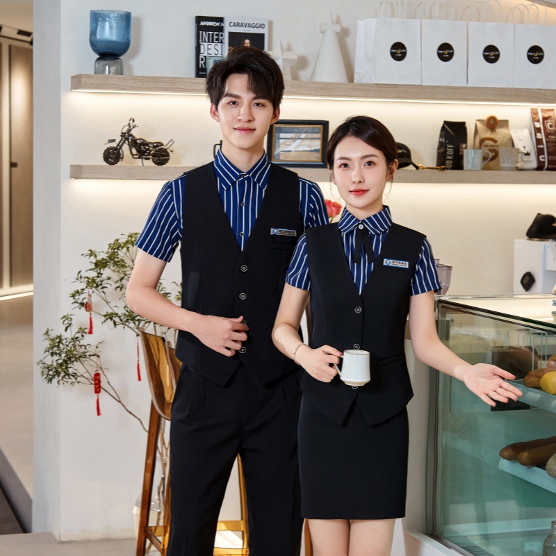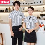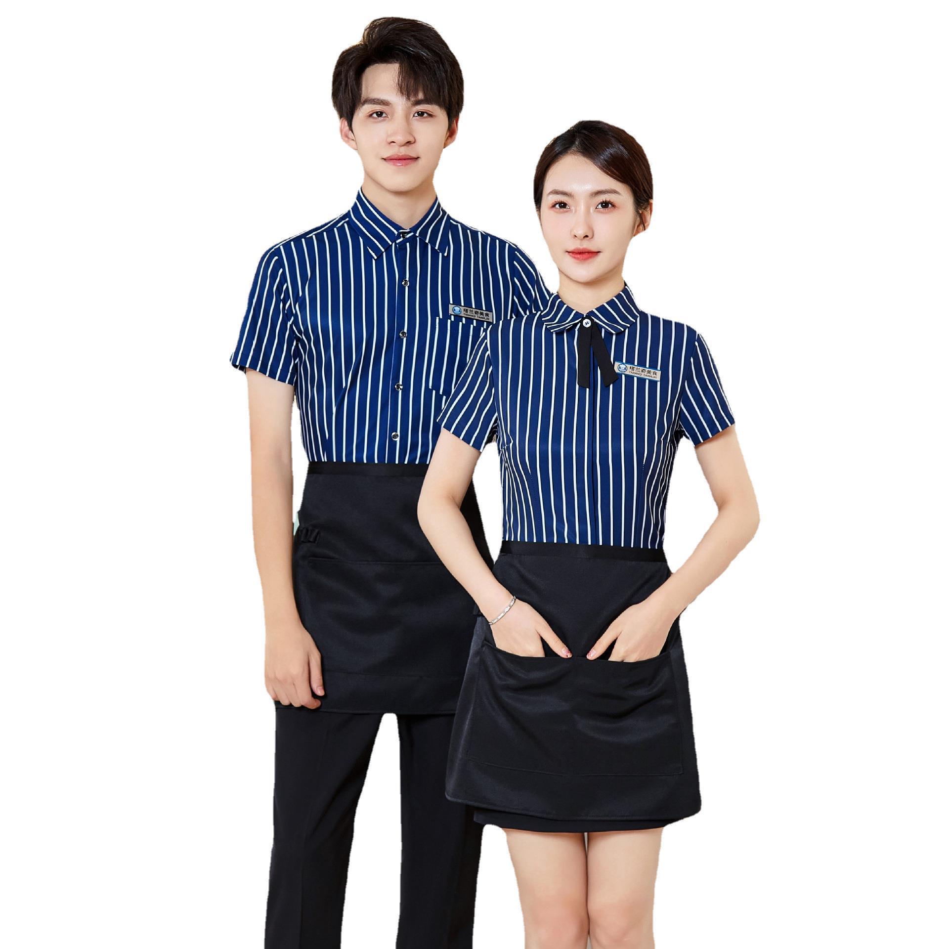 | nameOriginal | Short-sleeved striped shirt suit female cashier restaurant overalls men's and women's hotel catering restaurant waiter overalls |