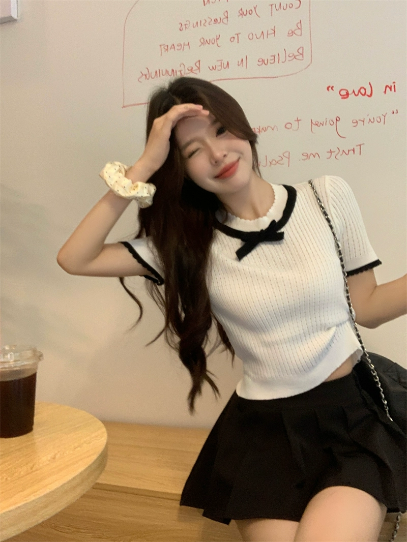 | nameOriginal | Short-sleeved summer 2024 new slim top with bow tie |