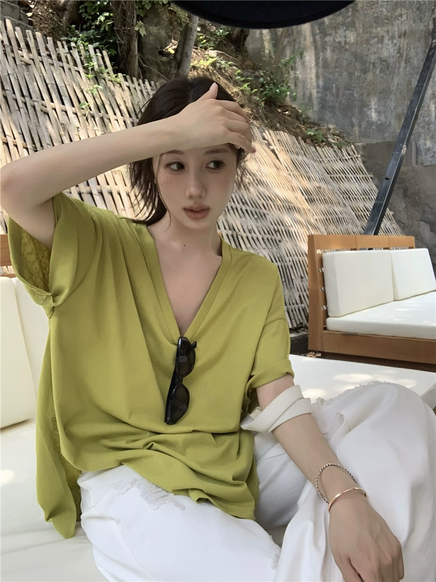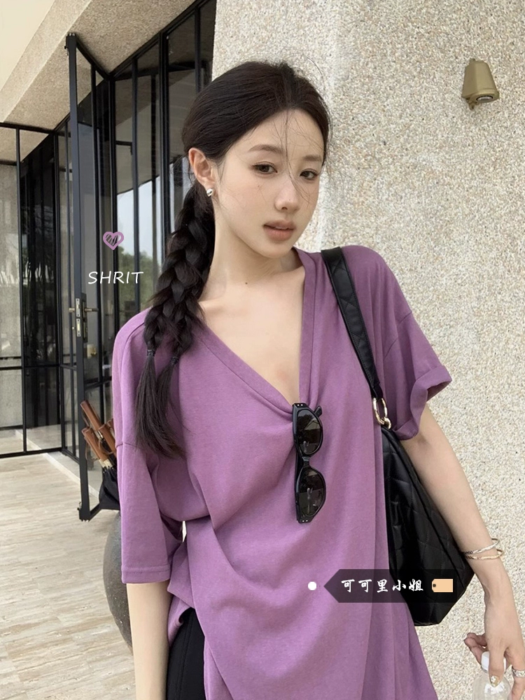Short-sleeved summer design loose top T-shirt with slits