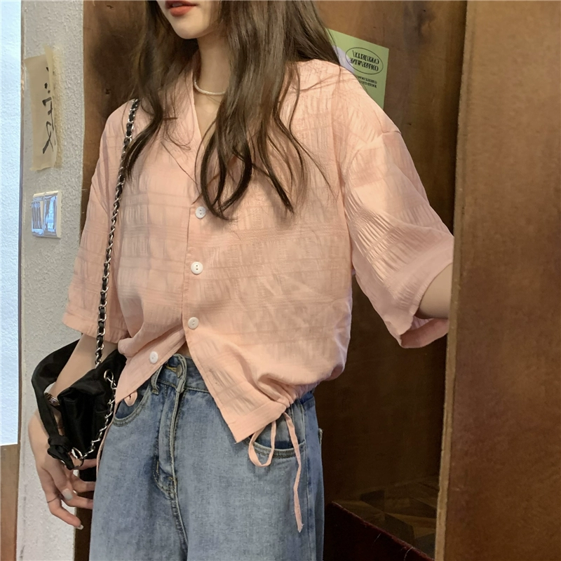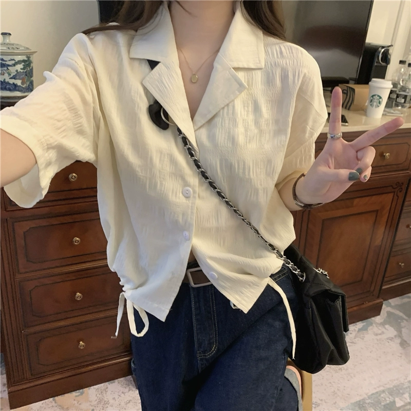 | nameOriginal | Short-sleeved summer niche drawstring V-neck shirt |