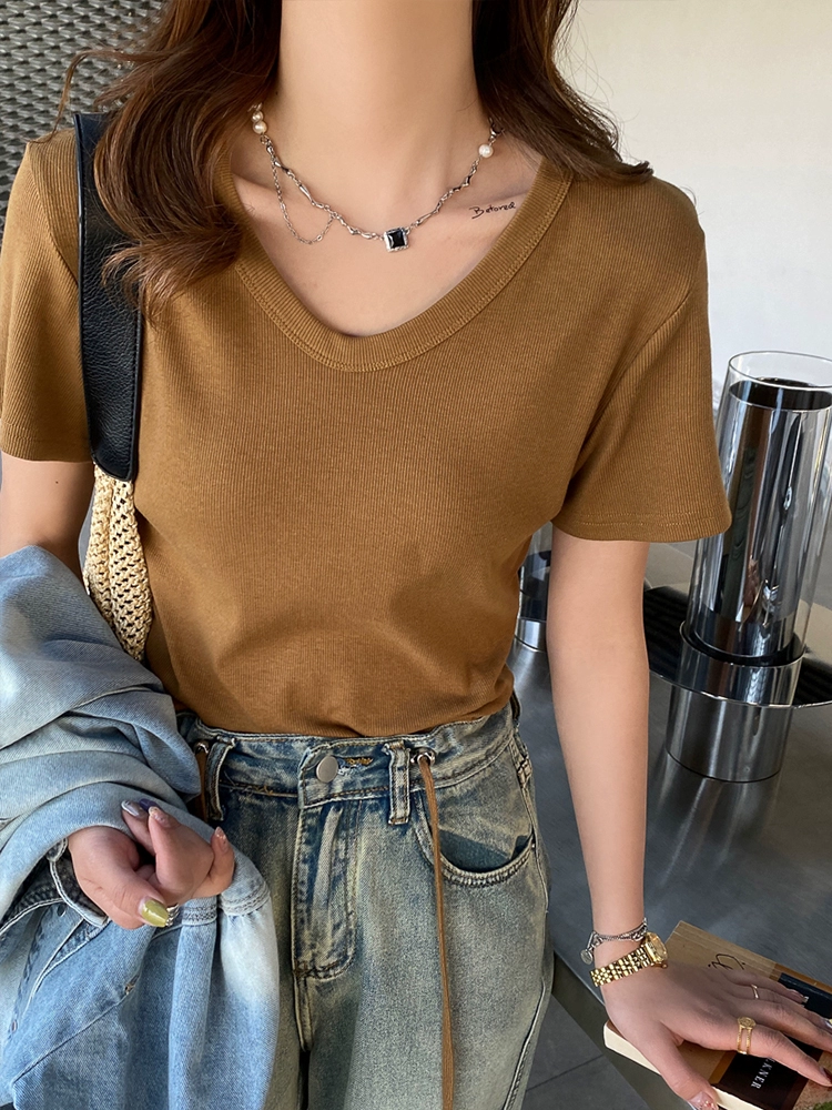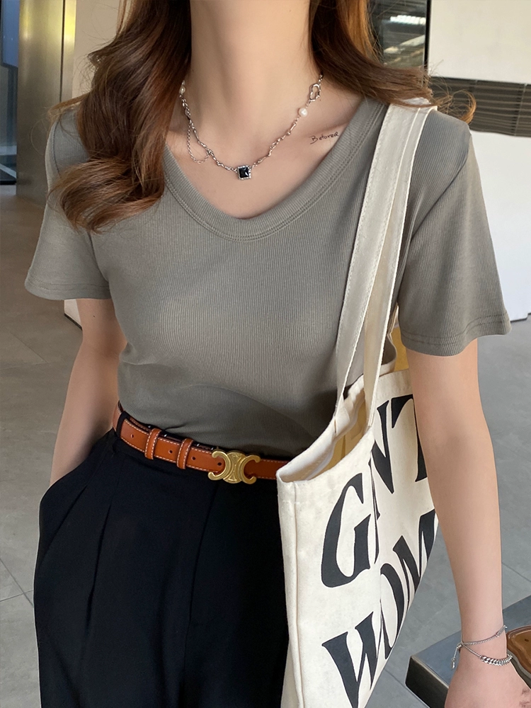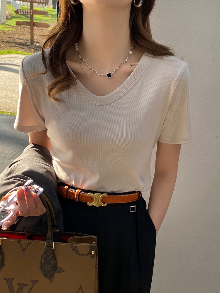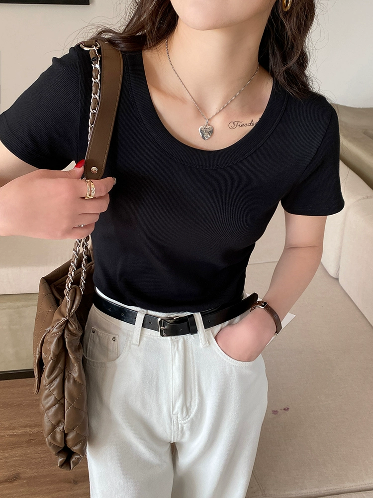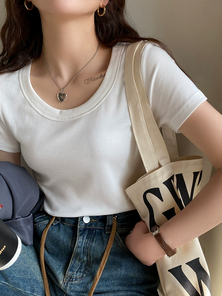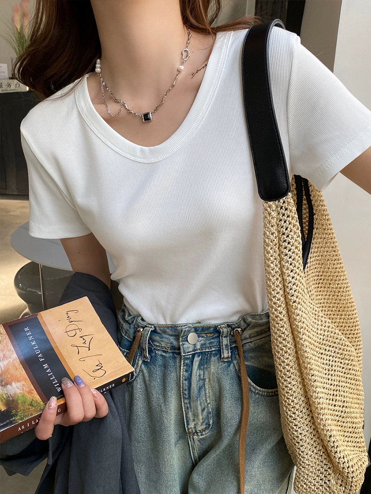 | nameOriginal | Short-sleeved summer slim fit pure cotton right shoulder white t-shirt |