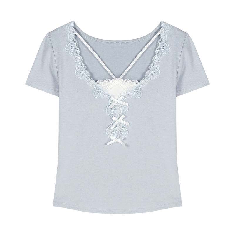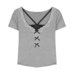 | nameOriginal | Short-sleeved summer slim-fitting niche gray top fake two pieces |