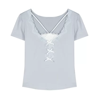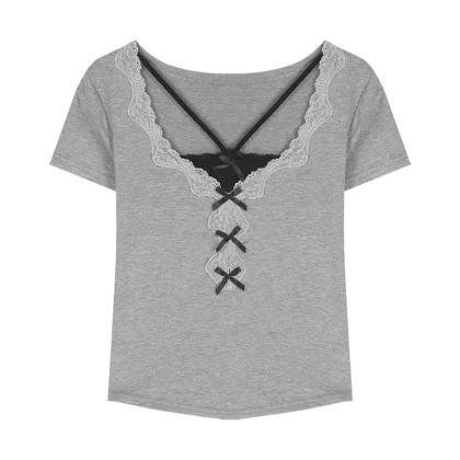 | nameOriginal | Short-sleeved summer slim-fitting niche gray top fake two pieces |