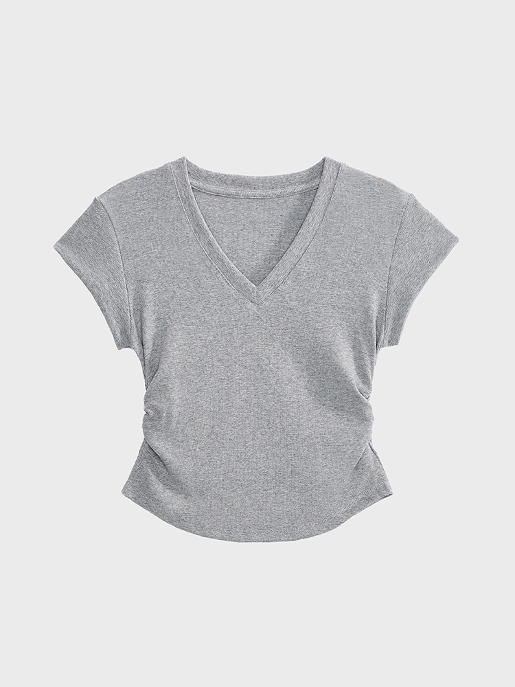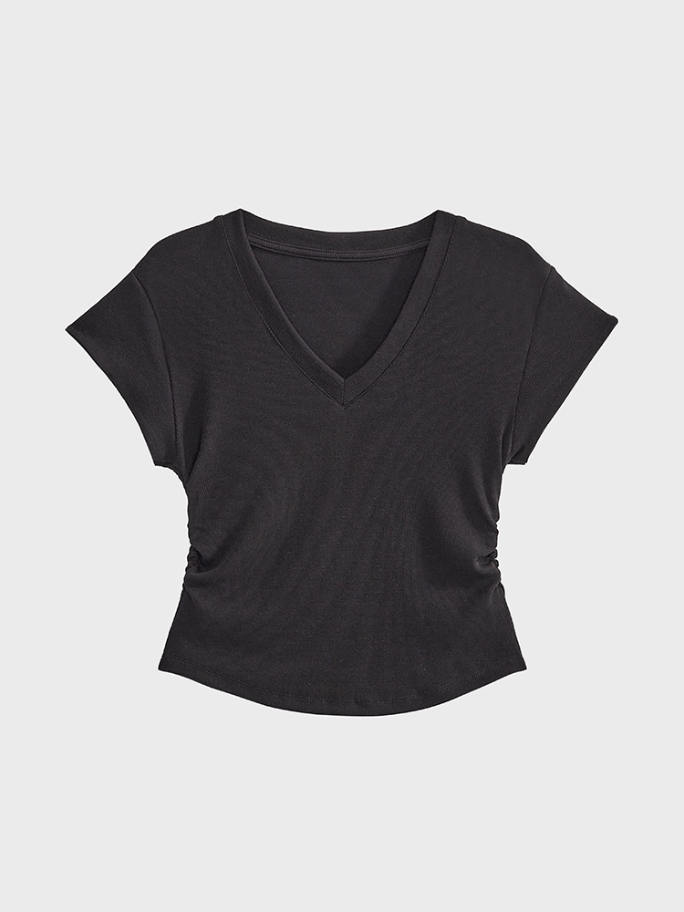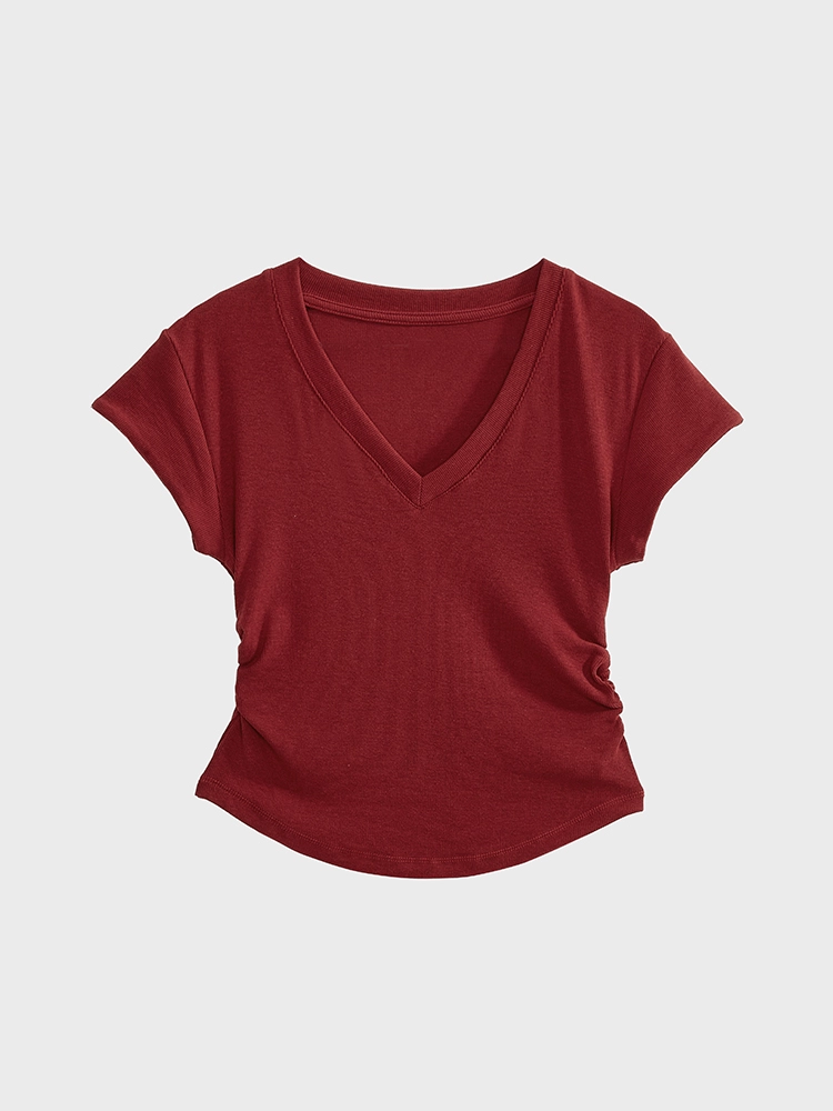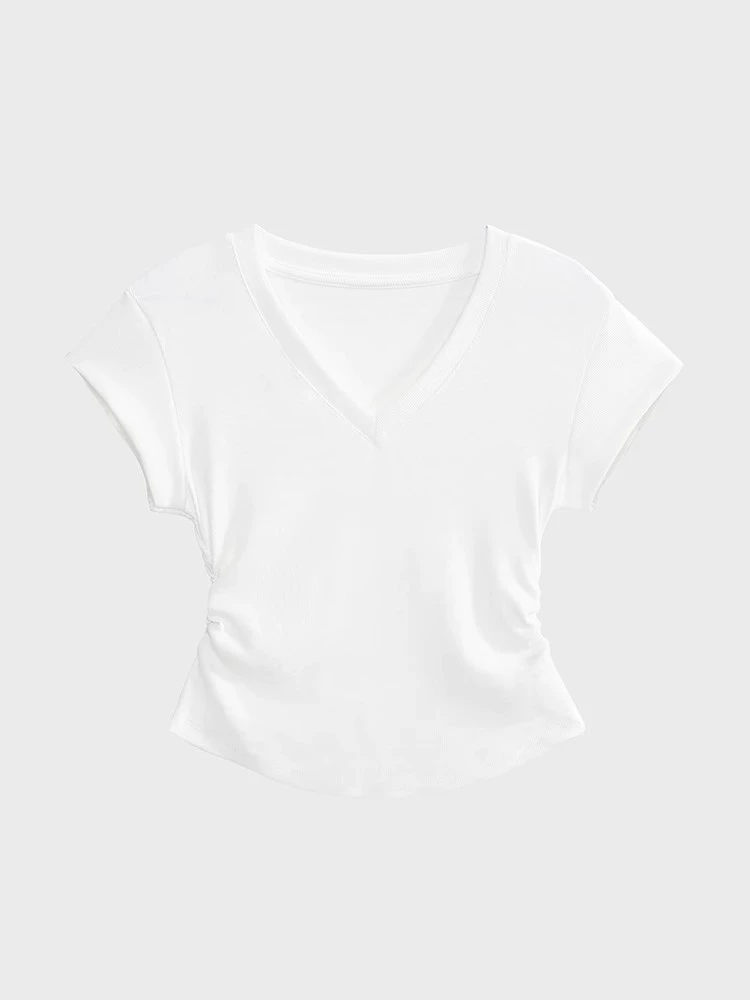 | nameOriginal | Short-sleeved summer slim-fitting right-shoulder V-neck smocked top T-shirt |