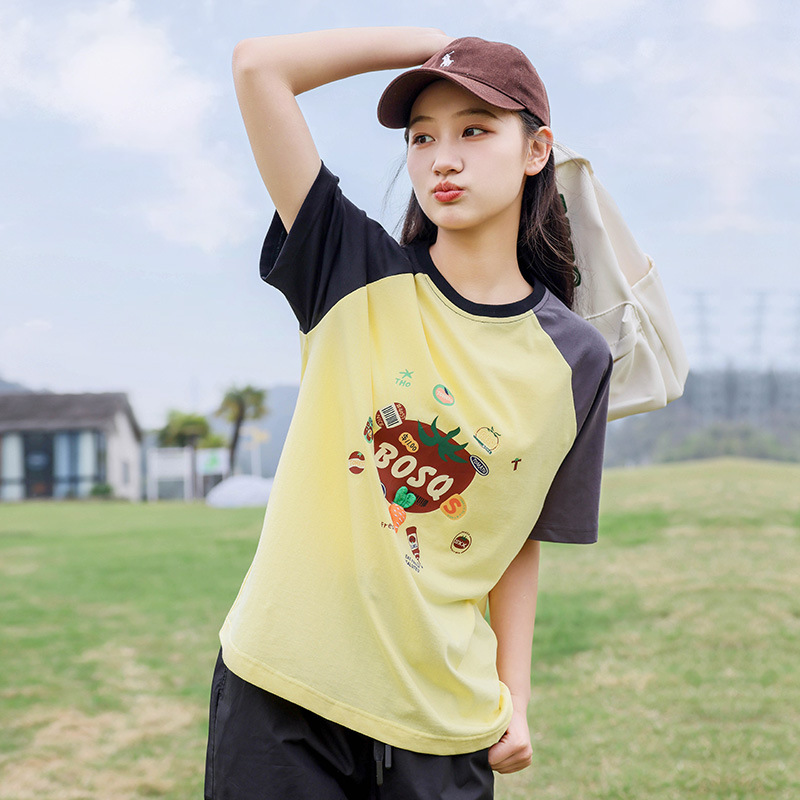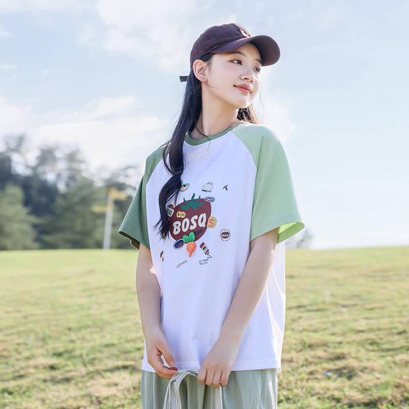 | nameOriginal | Short-sleeved T-shirt 2024 New Summer Girl's Loose Raglan Sleeve Round Neck Loose Junior Senior high school Student T-shirt S1069 |