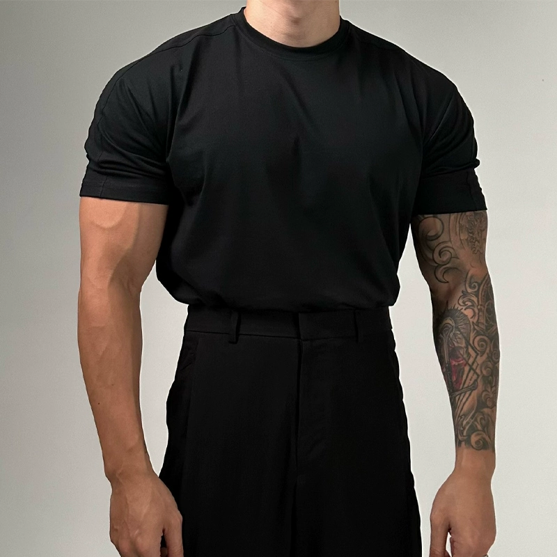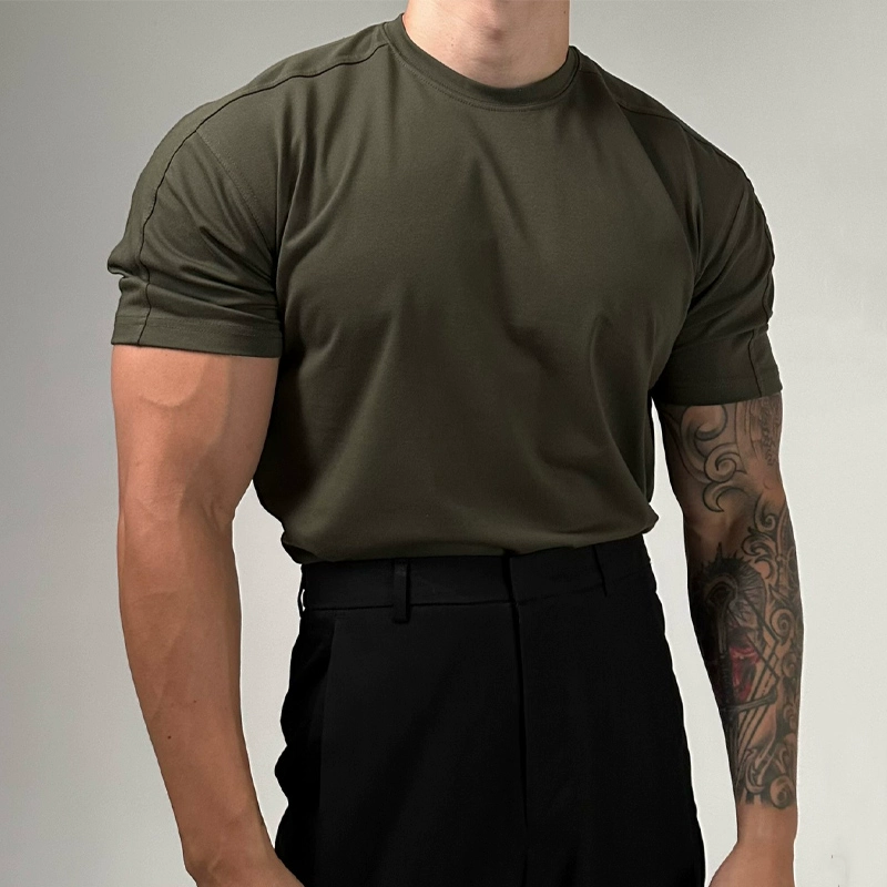 Short -sleeved T -shirt Men’s Summer Leisure Slim Slim Slim Revis. Cousin Round Neck Sports Fit Training