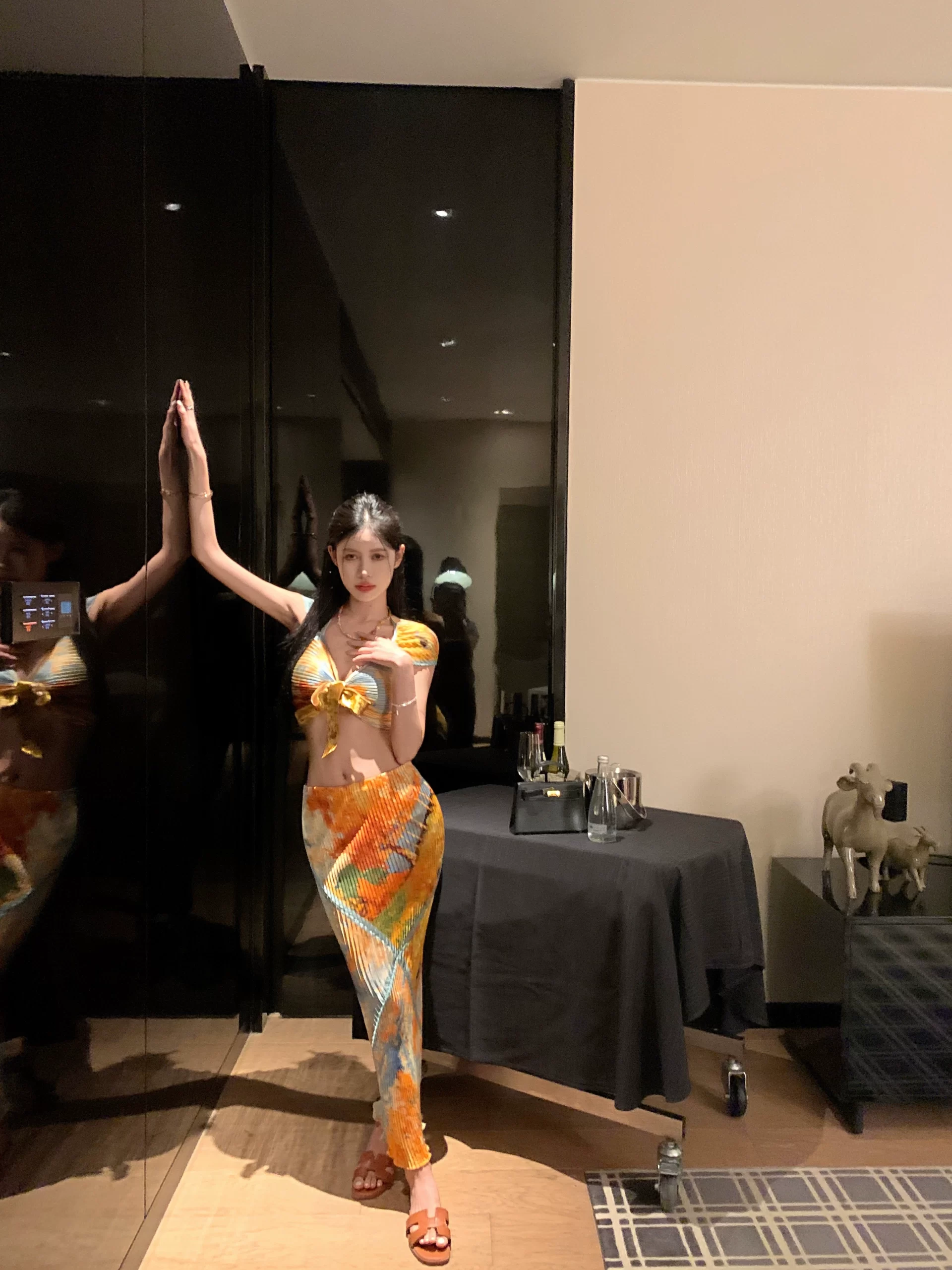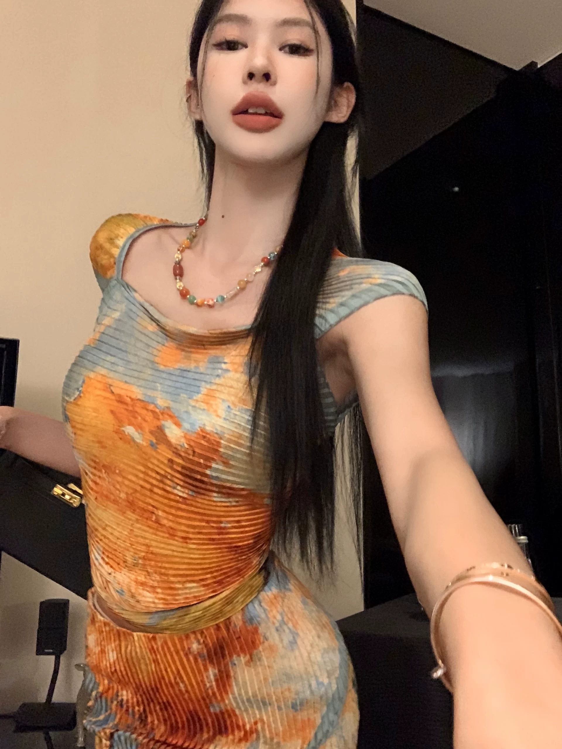 | nameOriginal | Short-sleeved T-shirt for women summer sexy hip-covering oil painting print |