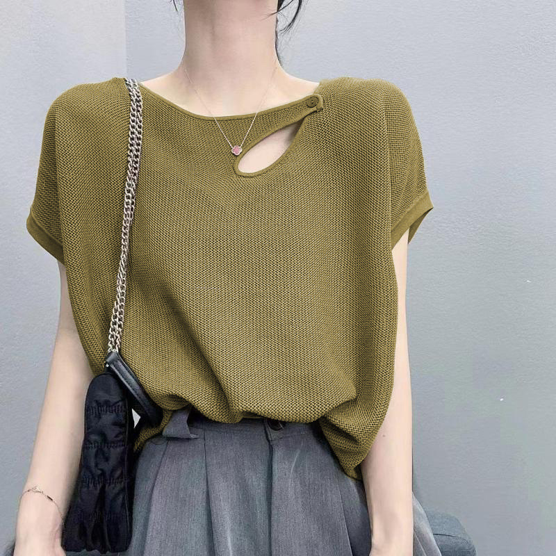 | nameOriginal | Short-sleeved T-shirt ice silk sweater 2024 Summer thin design hollow loose slimming versatile solid color top |