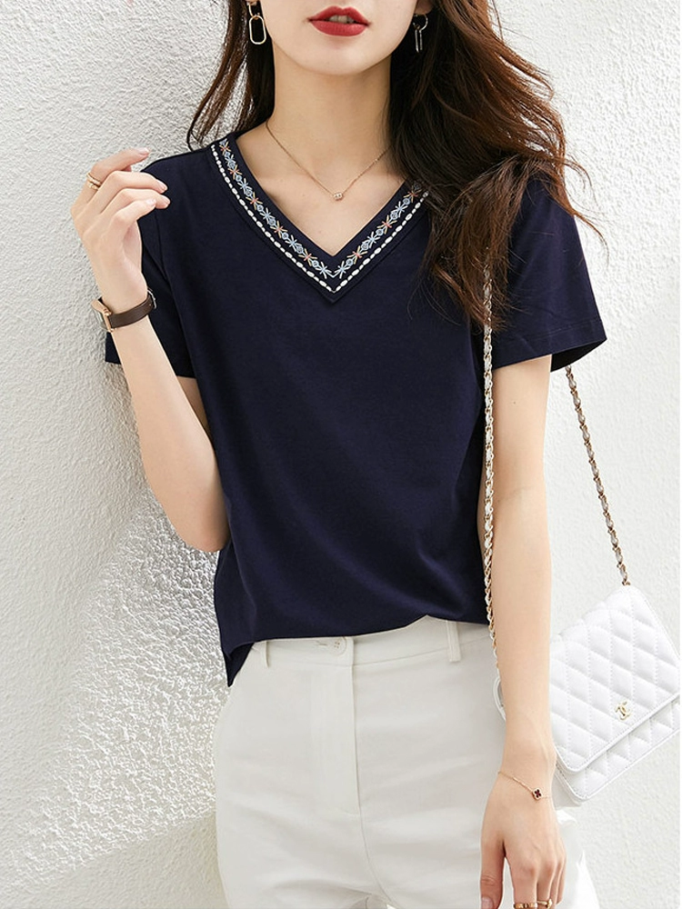 | nameOriginal | Short-sleeved t-shirt new design loose top embroidered |