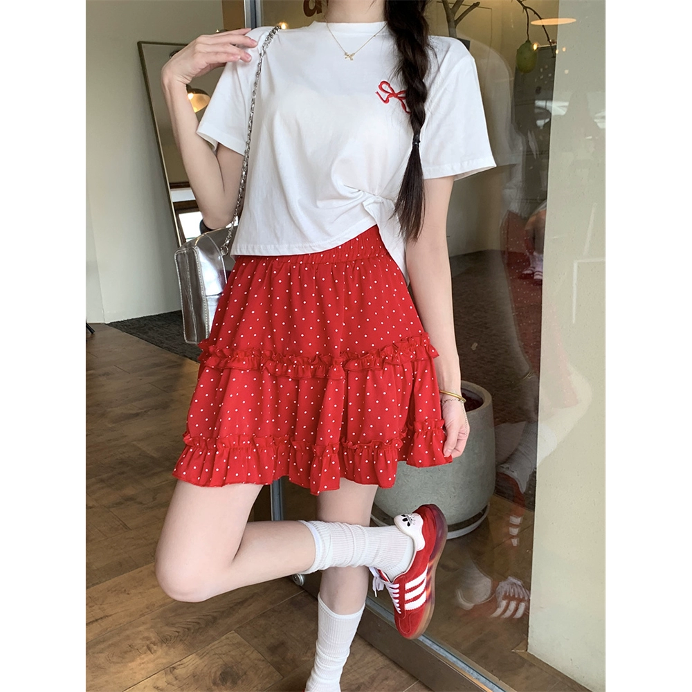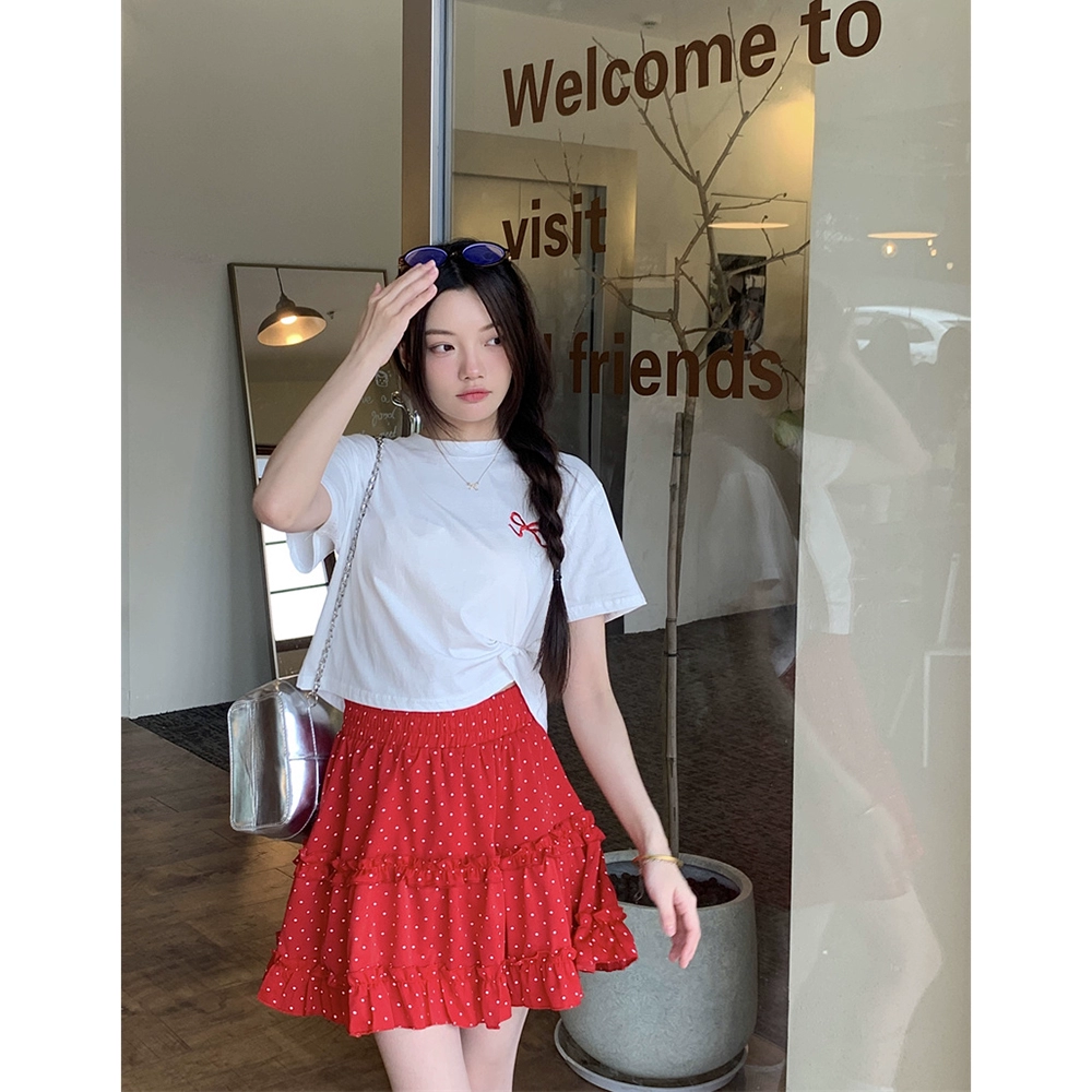 | nameOriginal | Short-sleeved T-shirt, red polka dot A-line skirt, fashion suit |