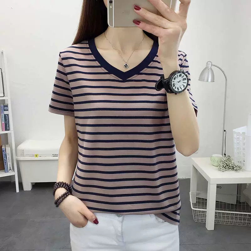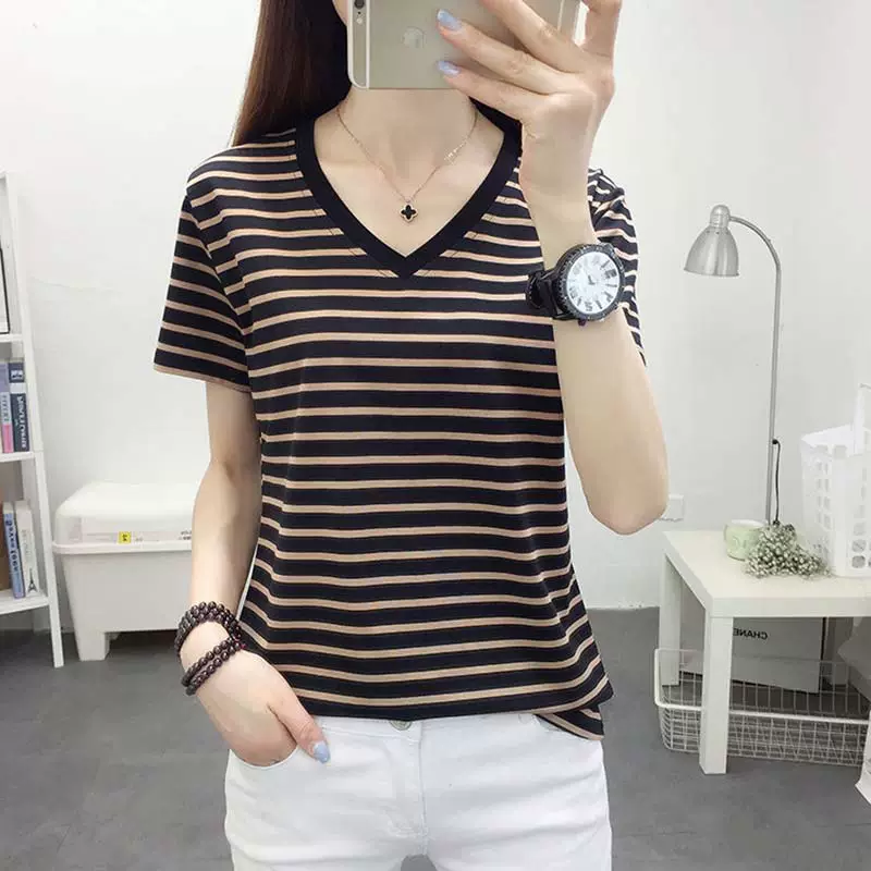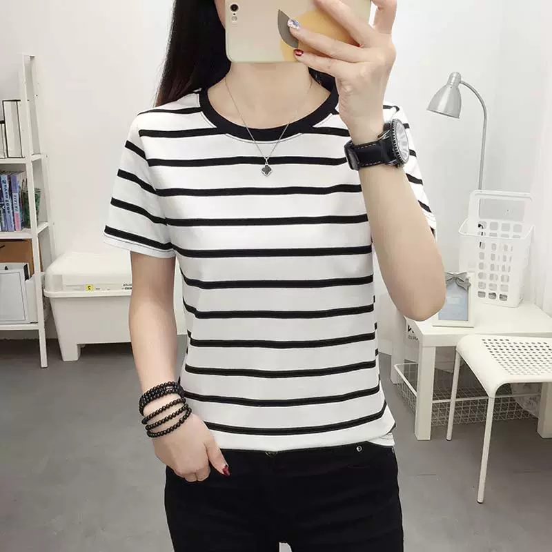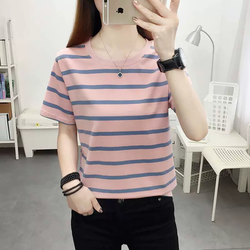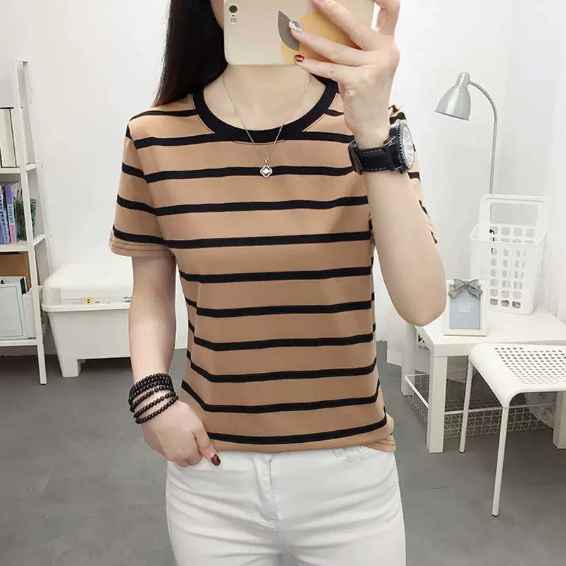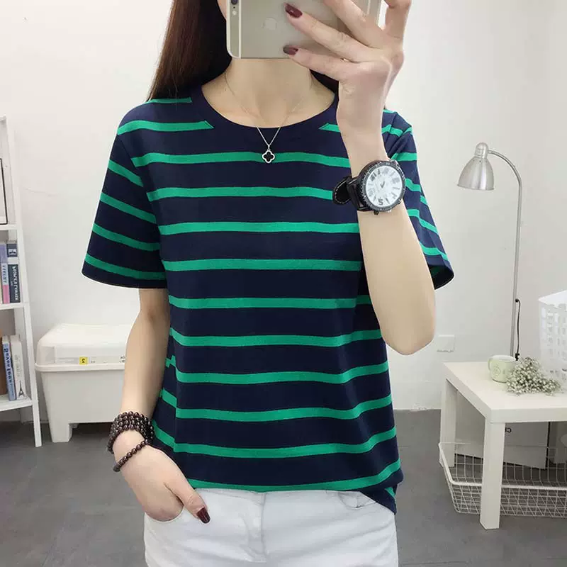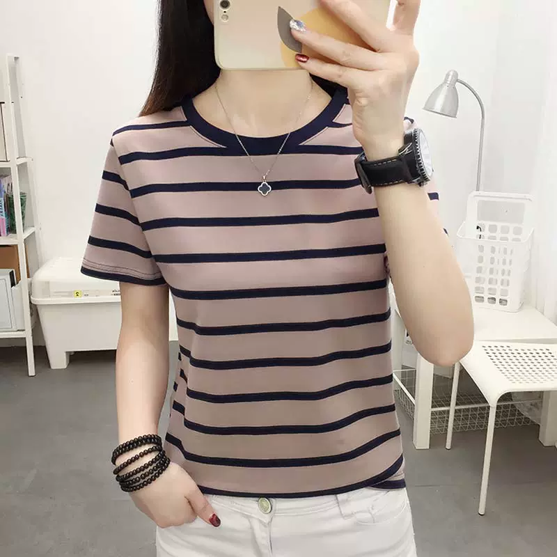| nameOriginal | Short-sleeved T-shirt, striped loose, belly-covering, slimming summer dress |