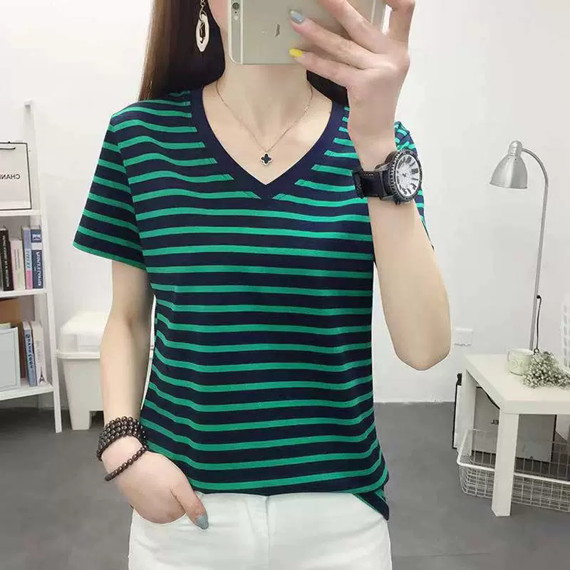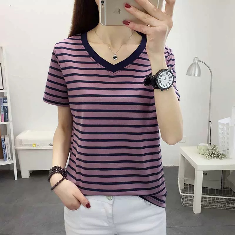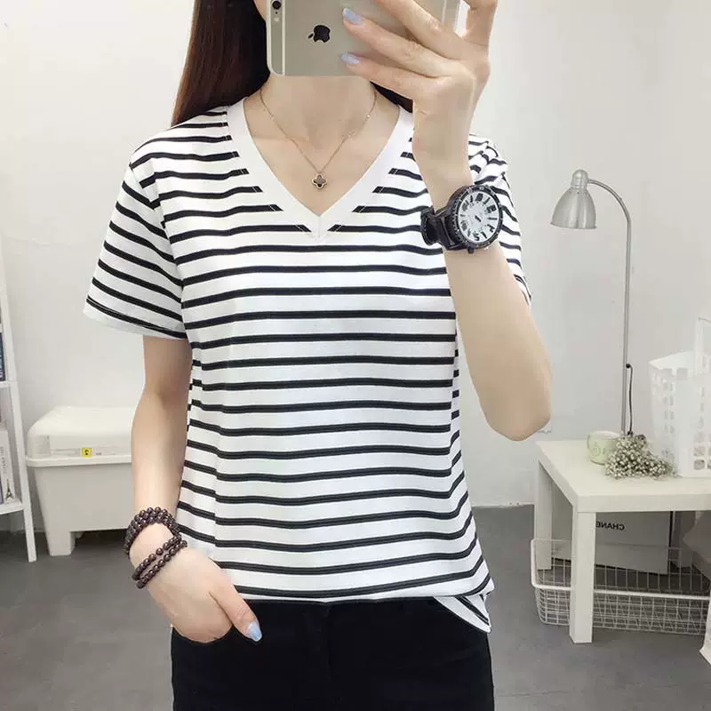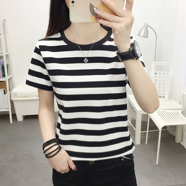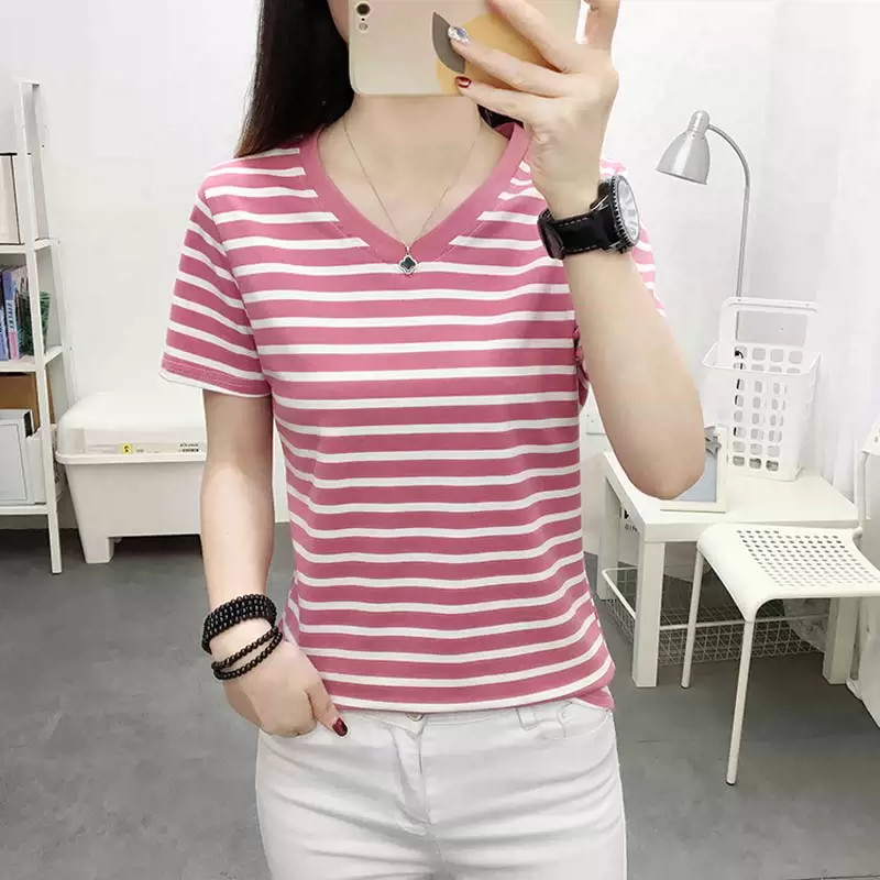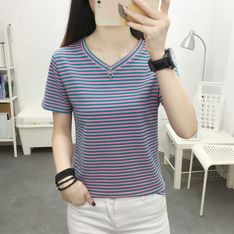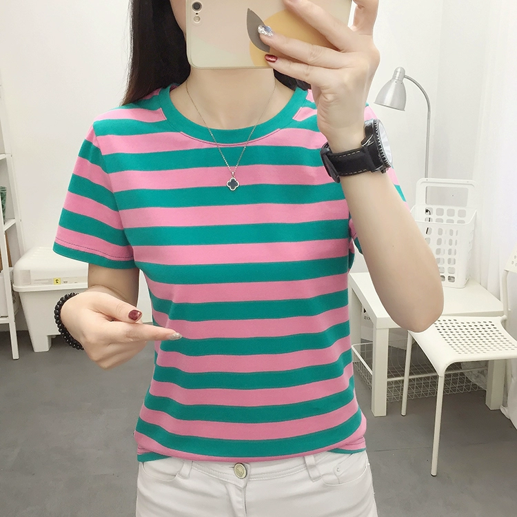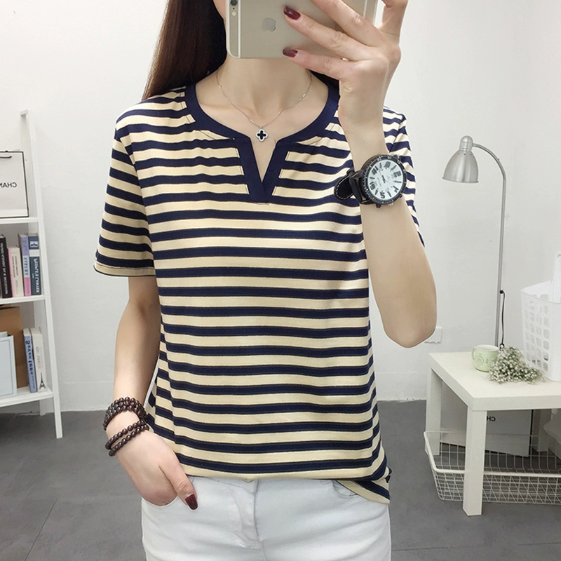 | nameOriginal | Short-sleeved T-shirt, striped loose, belly-covering, slimming summer dress |