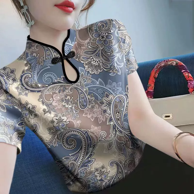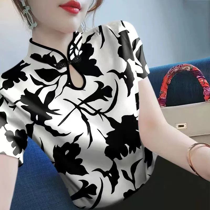 Short -sleeved T -shirt Summer Printing Top Slim Slim Bow