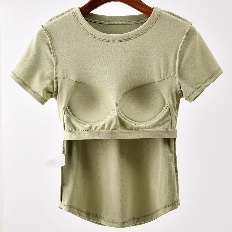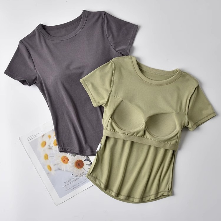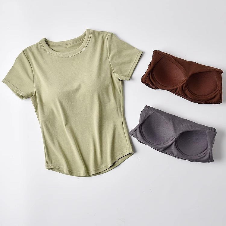 | nameOriginal | Short-sleeved T-shirt with Chest Pad Women's Summer Base Shirt All-match Solid Color Round Neck Top Bra-free Yoga Clothes for Summer Outer Wear |