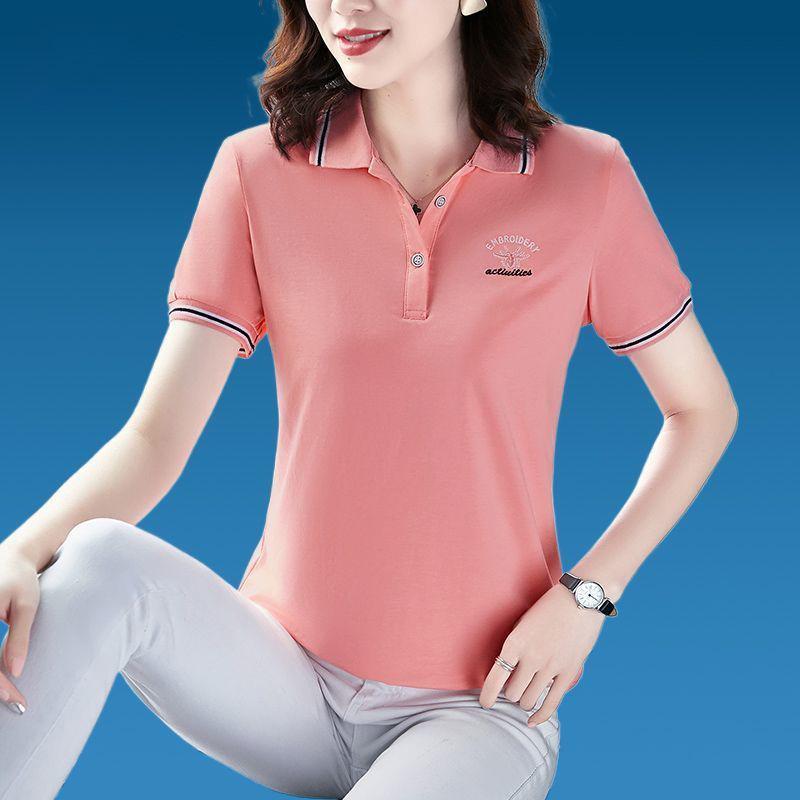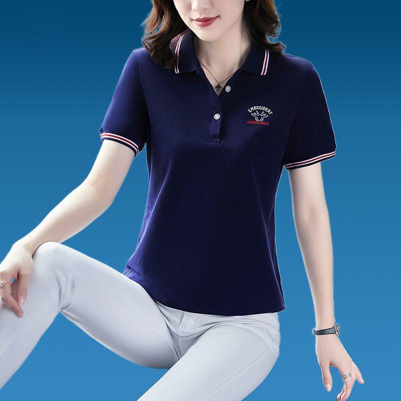 Short-sleeved T-shirt women's lapel summer new loose solid color POLO collar middle-aged Korean plus size women's T-shirt top