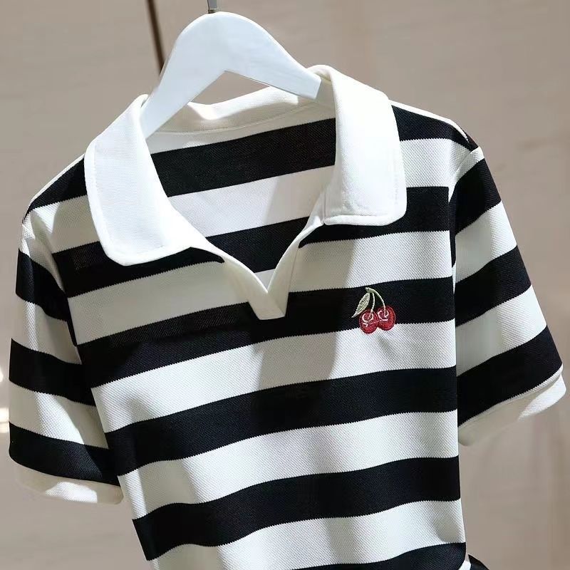 | nameOriginal | Short-sleeved T-shirt Women's Summer 2024 New Design Sense Fashion All-match Striped Polo Collar Top T-shirt |