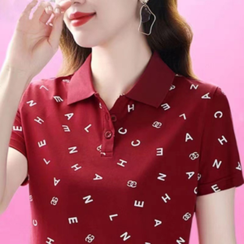 | nameOriginal | Short-sleeved T-shirt women's summer 2024 new plus size mother's summer lapel polo shirt with leader T-shirt top |