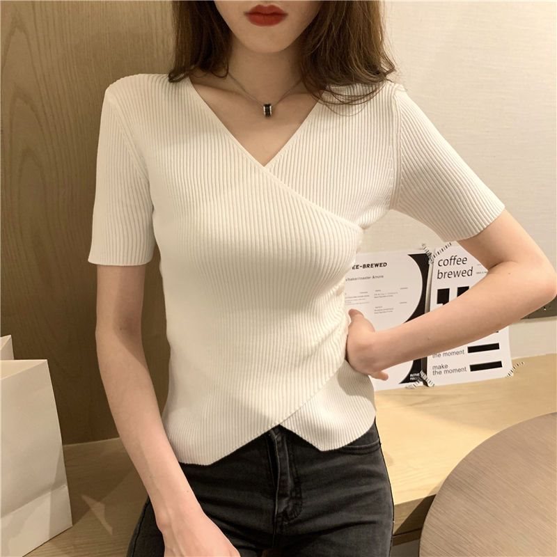 | nameOriginal | Short-Sleeved T-Shirt Women's Summer Inner-Wearing Knitted Shirt Cross V-Neck Western-Style Outer-Wearing Design-Sense Ins Short Base-Layer Shirt Top |