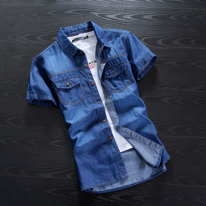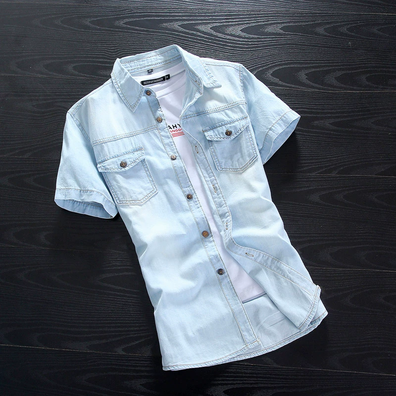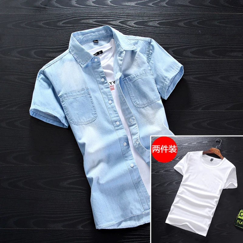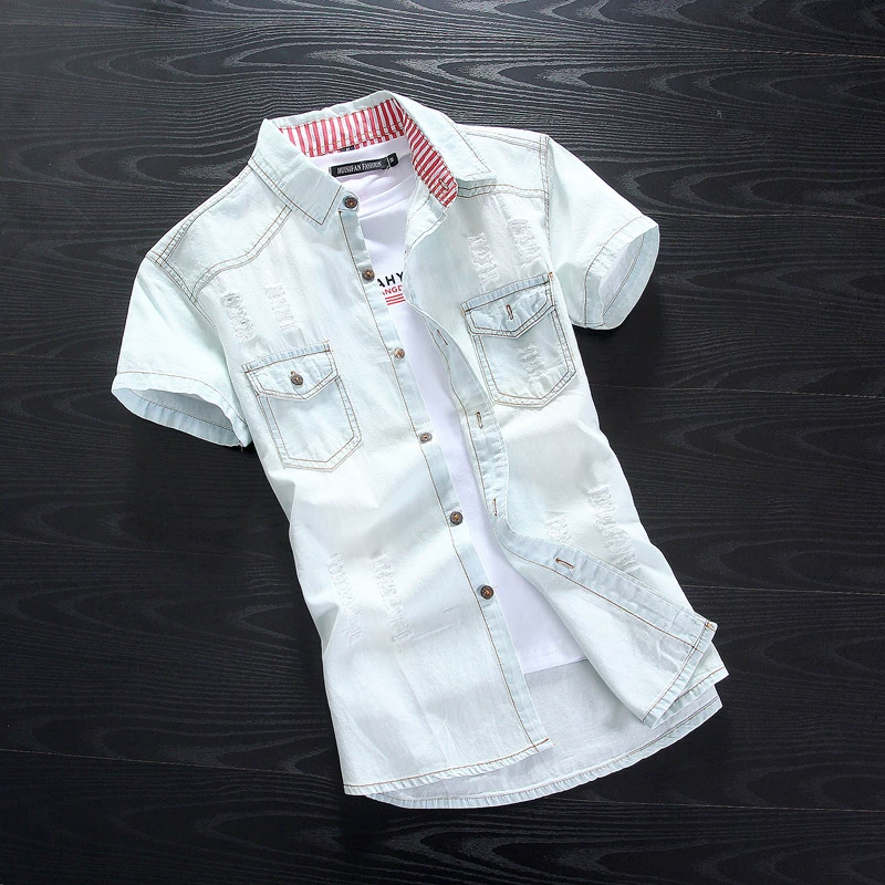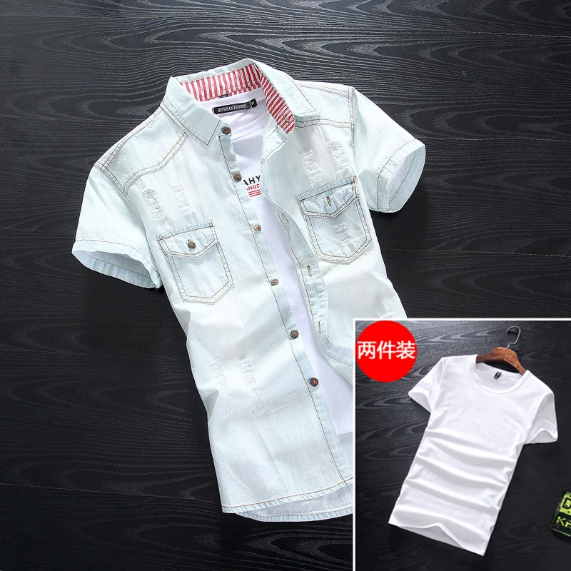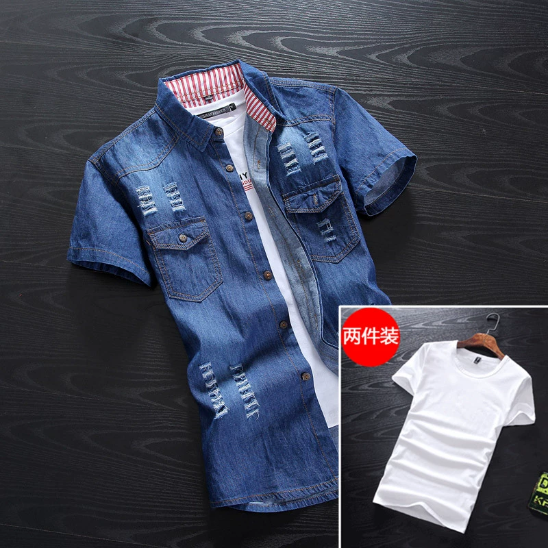 | nameOriginal | Short-sleeved trendy ripped casual and handsome denim shirt |