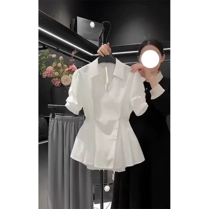 | nameOriginal | Short-sleeved white French style haute couture shirt |