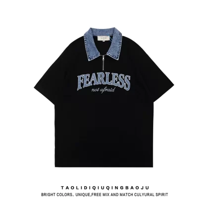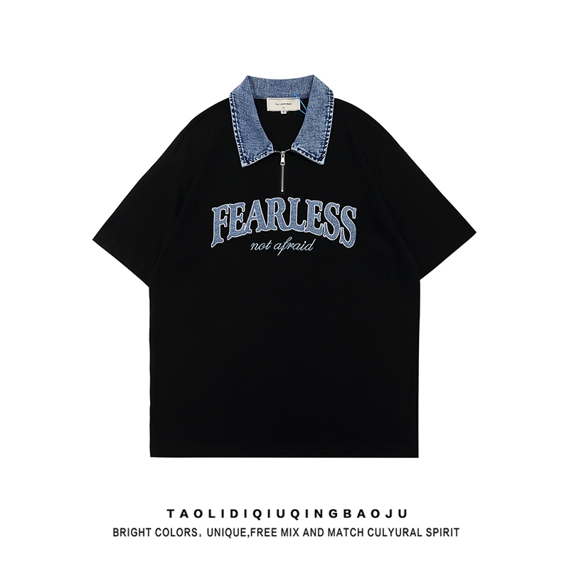 | nameOriginal | Short-sleeved women's summer casual half-zip top with embroidery |