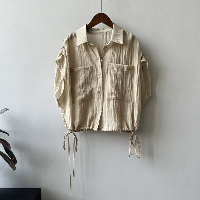 | nameOriginal | Short-sleeved women's summer thin niche lapel retro drawstring |