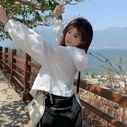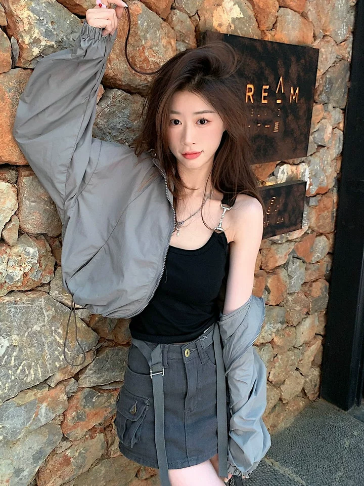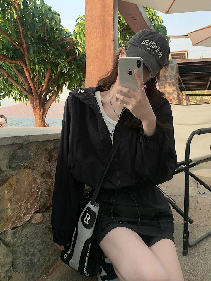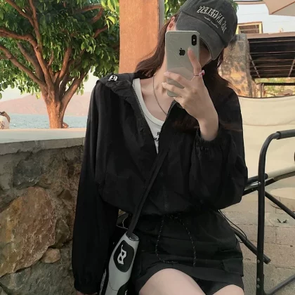 Short sun protection jacket casual jacket top drawstring