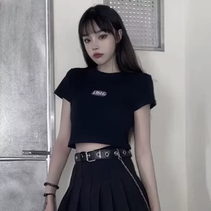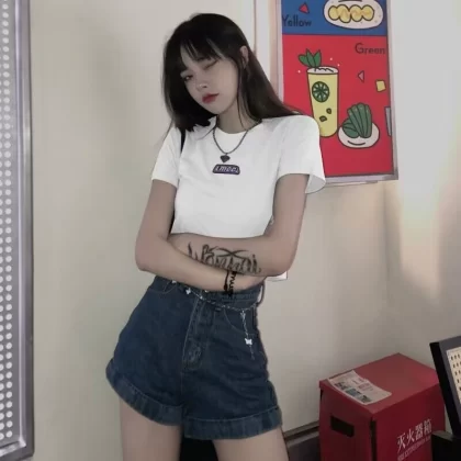 | nameOriginal | Short top women's t-shirt popular 2023 summer new design niche chic hottie navel exposed pure cotton short sleeves |