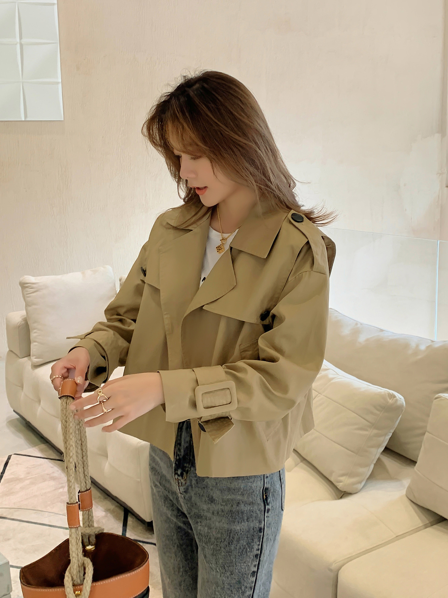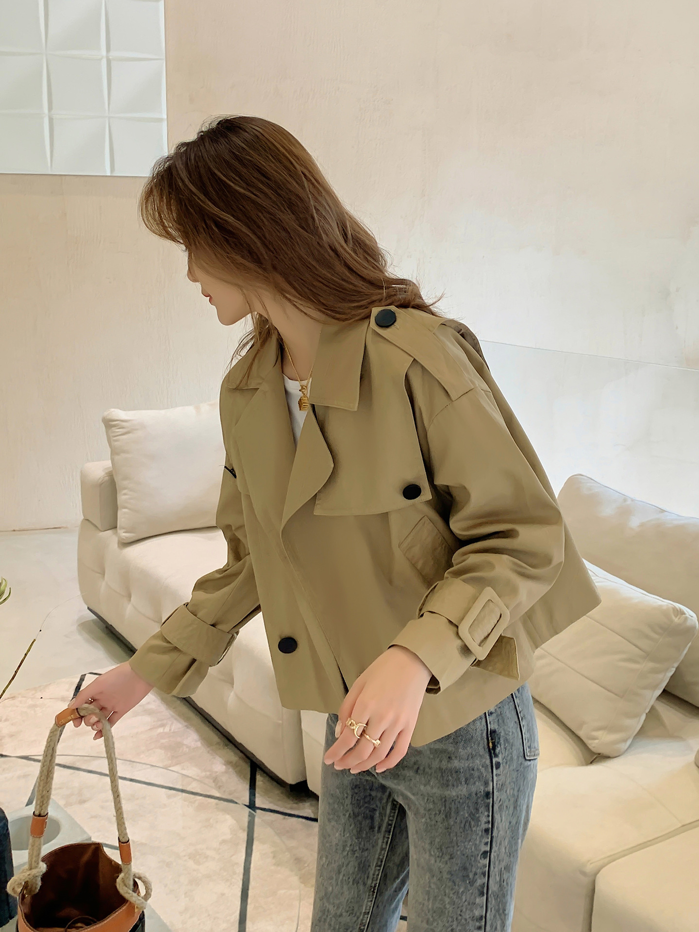 Short Trenchcoat Women’s Early Autumn and Early Spring New Korean Style Design Sense Commuter Khaki Coat for Petite